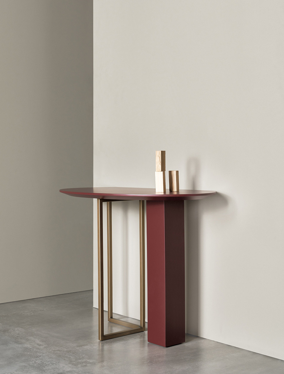 Console with a sculptural shape: the basement is made up of a monobloc unit and a metal frame supporting the top. The configuration possibilities of its elements make Abel a versatile solution, suitable for every space.