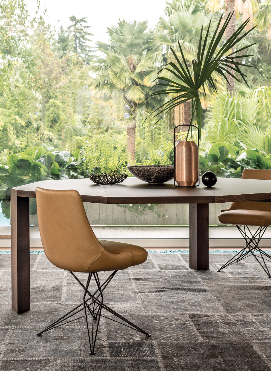 A chair that symbolizes refined metal work, creating three-dimensional angles and master material craftsmanship in the seat arrangement granting comfort and support for those that want to relax.