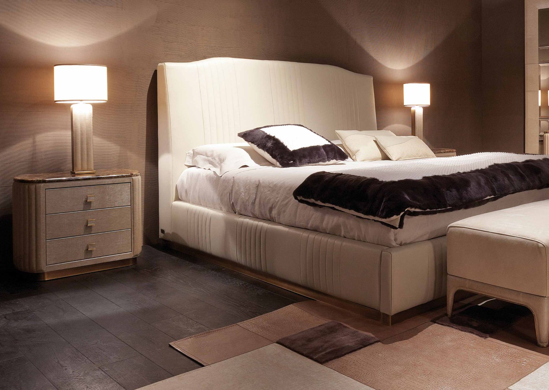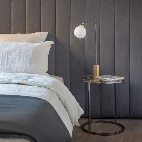 3 drawers upholstered bedside table with marble top