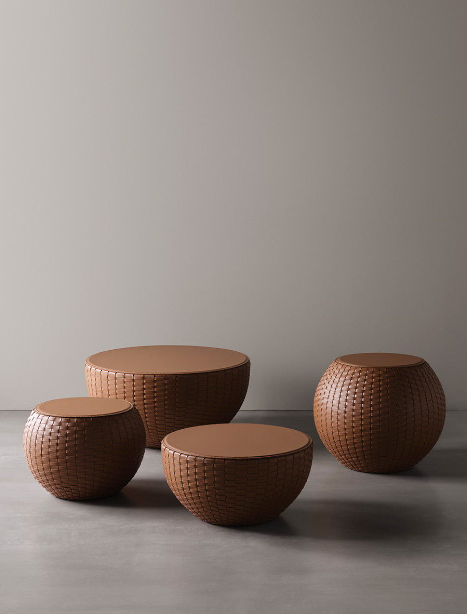 Bongo’s low table collection shows a new finish: the softness and strength of leather together with the skilful hand-woven manufacturing perfectly embrace the geometric shapes of this collection. The attention to details and the aesthetic value make the product unique. Bongo Kuoio attracts those who are searching for an exclusive furniture element.