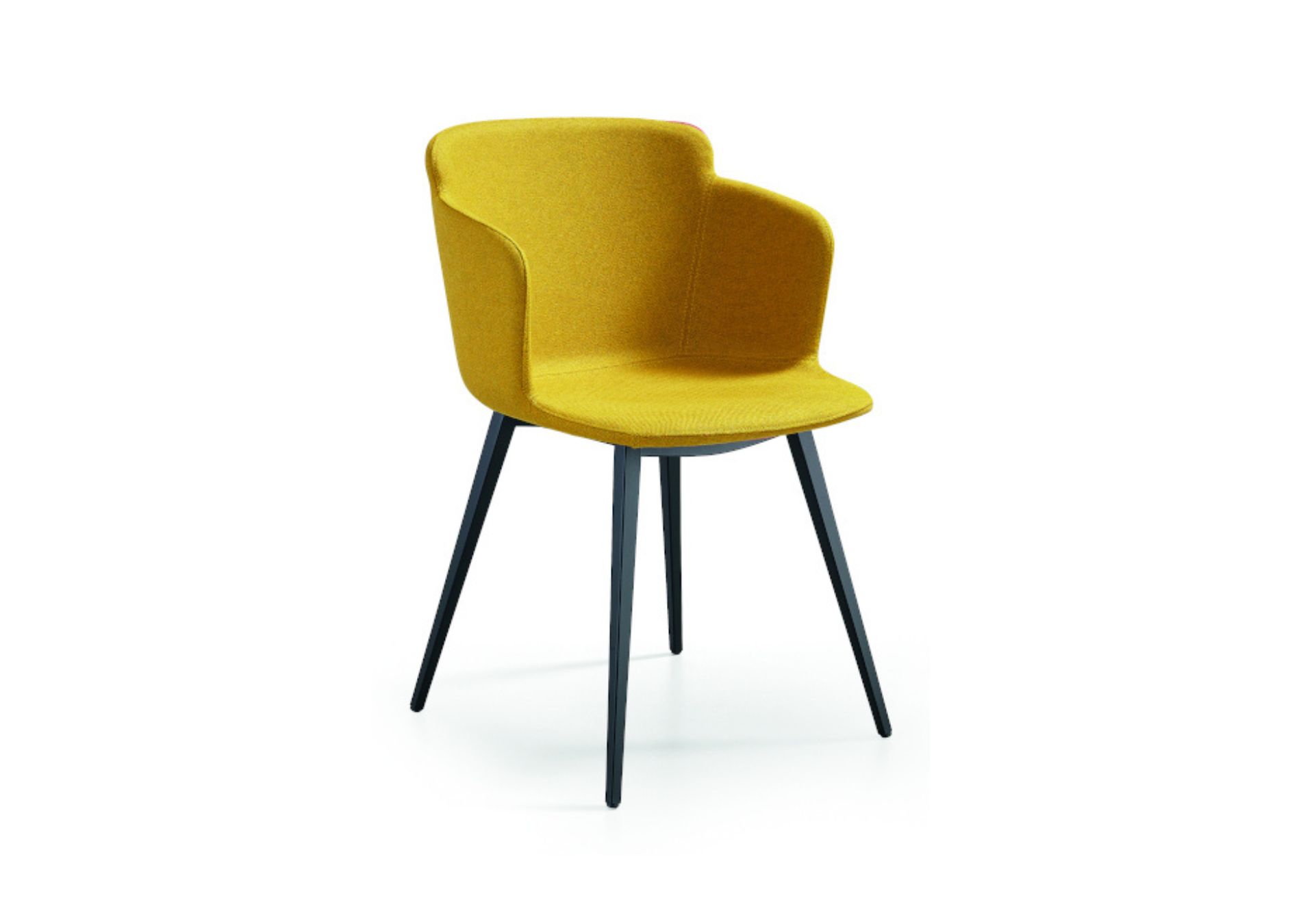 Calla armchair with four-legs metal base and seat upholstered in leather, faux leather or fabric.