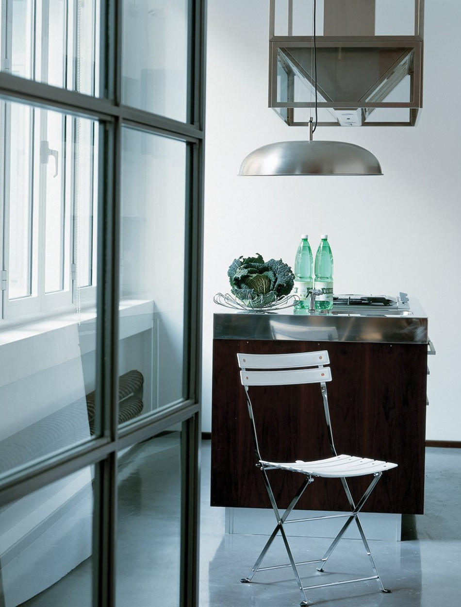 In the late Seventies Zanotta undertakes a new trend of research aimed at identifying and recovering from the past objects of anonymous origin, “already seen”, but to be revisited and represented in a contemporary key. So, in 1978 Zanotta asked Marco Zanuso to redesign a “familiar” outdoor folding chair – its model had been found in a shop of used furniture. Interpreting to its best the concept of redesign, Zanuso introduced some improvements to enhance the chair’s functional characteristics and the seat comfort. Regarding the latter Zanuso proposed a highly-refined solution by covering the strips, originally made of metal, with a noble and precious material such as cowhide.