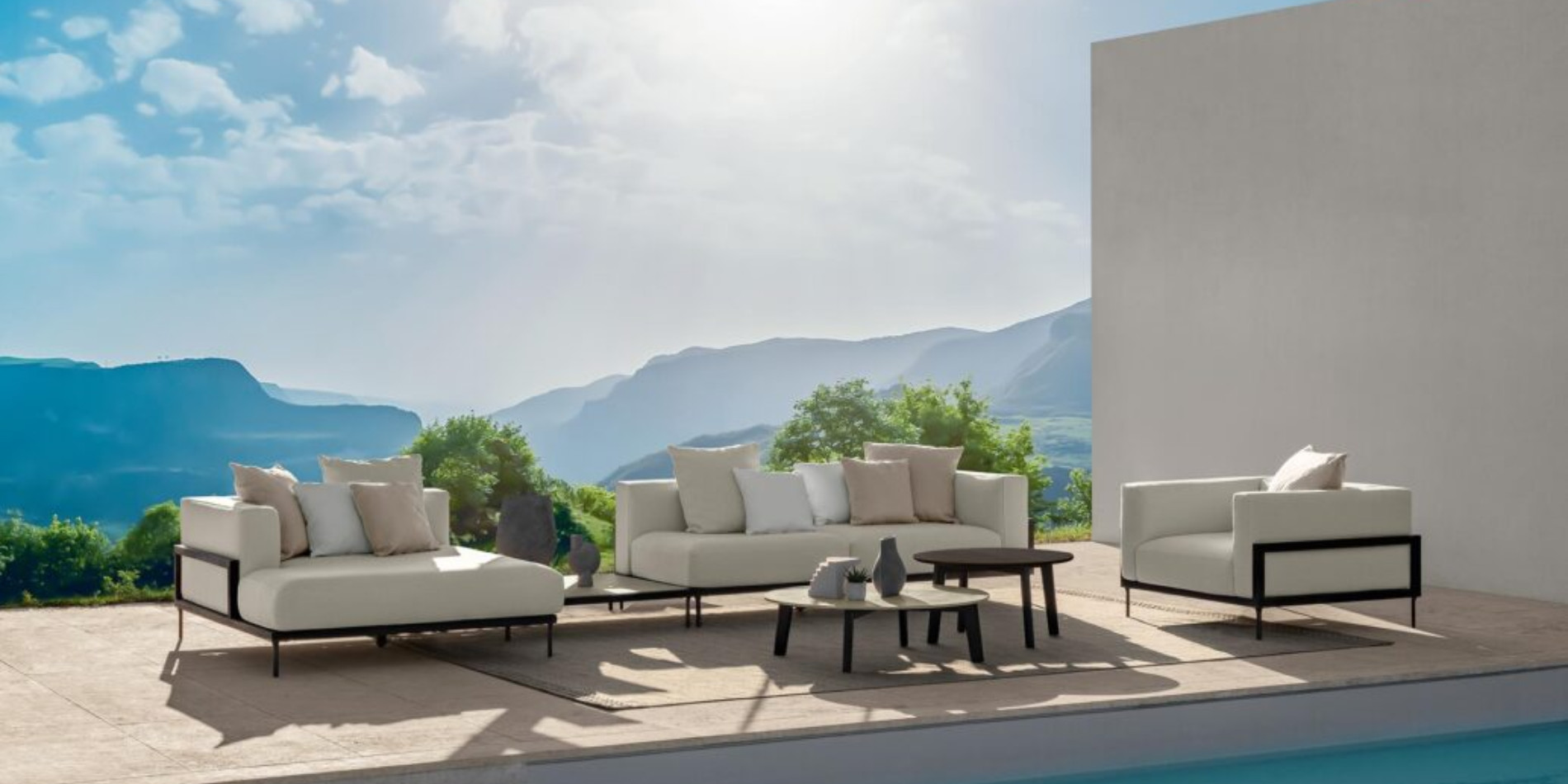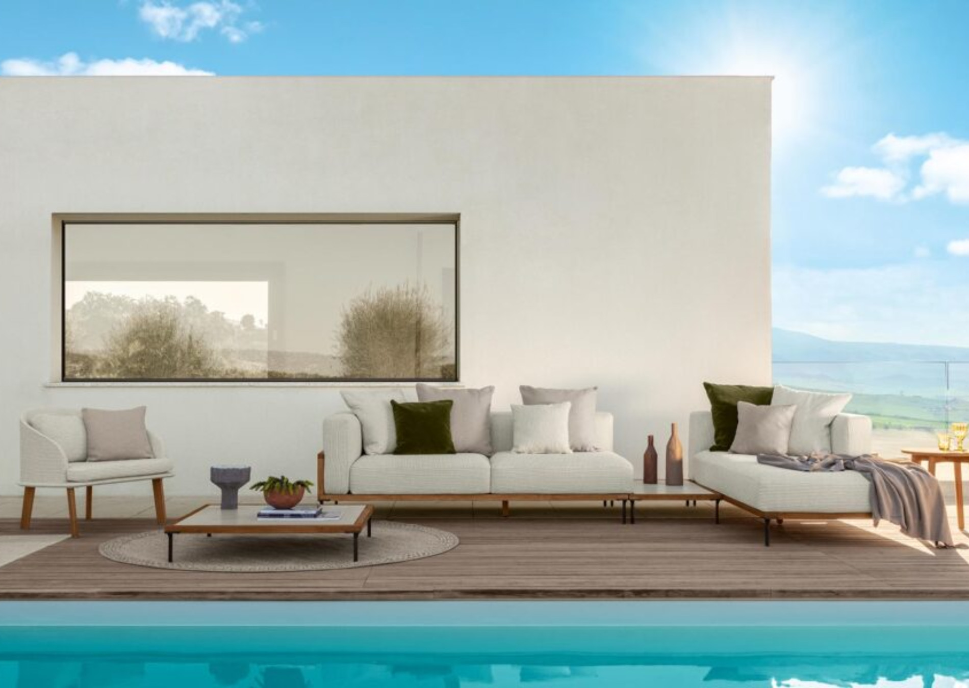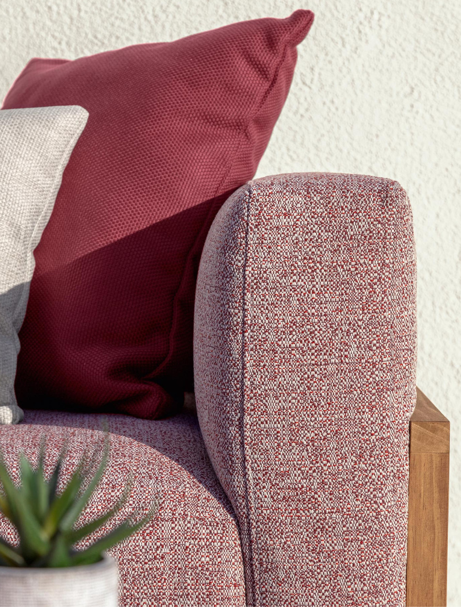 The design of the CleoSoft Wood collection offsets the rigid wooden frame of the 3-seater outdoor sofa with the softer lines of the other modules. The voluminous upholstery of the seat and backrest, made of removable, easy-to-wash and weather-resistant fabric, rests on the sturdy wooden frame, hallmark of the entire collection. The padding is made of quick dry foam.