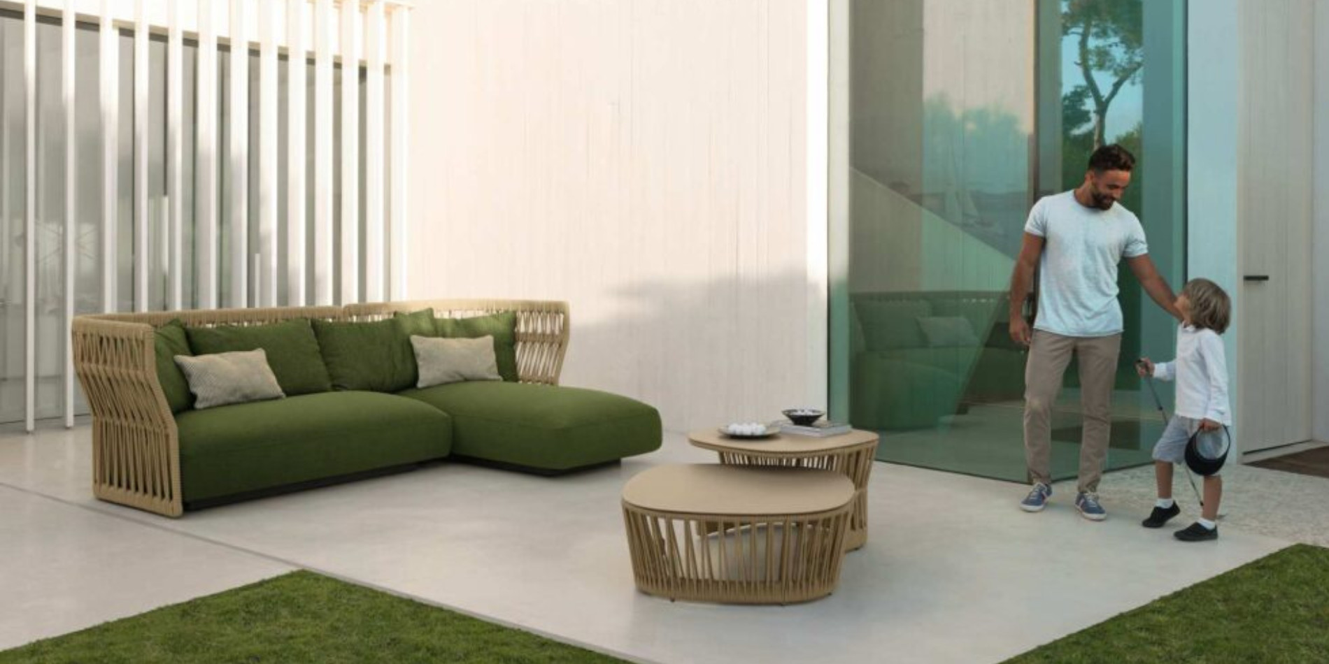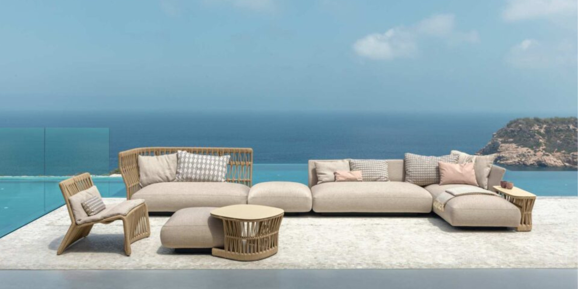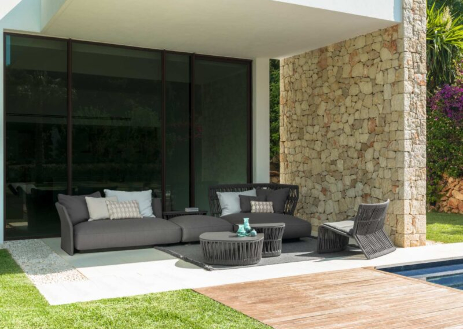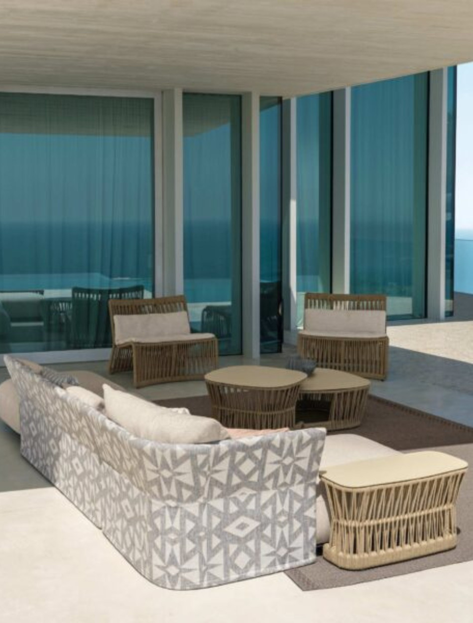 The wide seat is a perfect example of the unique shape of Cliff elements. Rope braiding can be found in the other elements of the collection and makes this element perfectly in line with the idea of play and fun that permeates the whole Cliff.