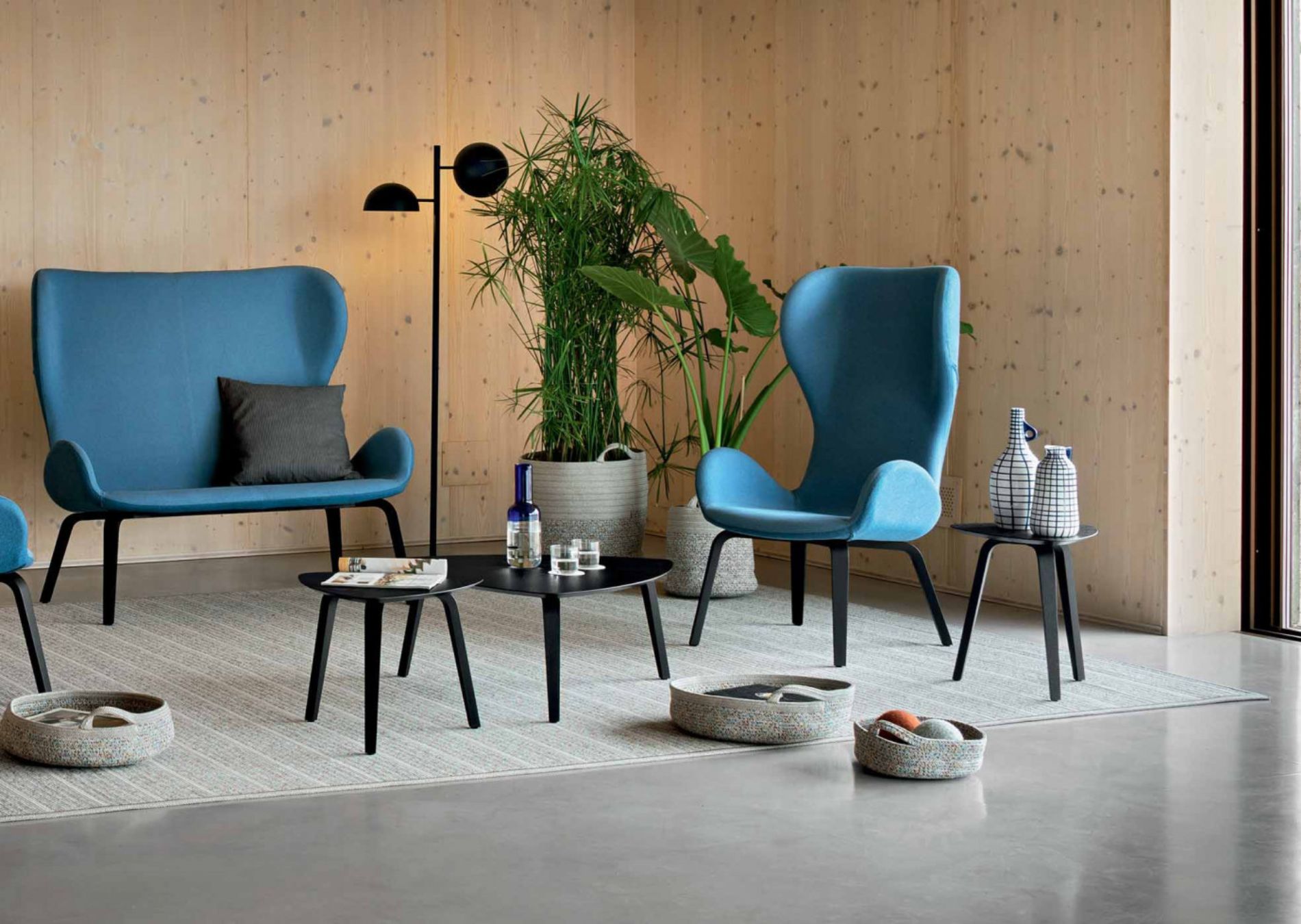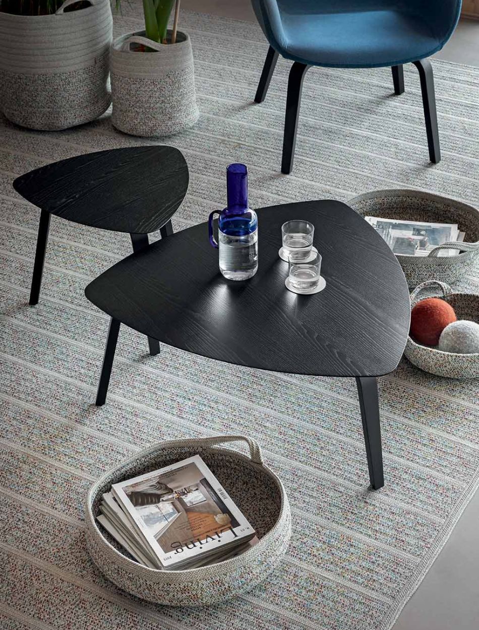 Dalia coffee table with three-legs base. Legs and top available in lacquered veneered wood.