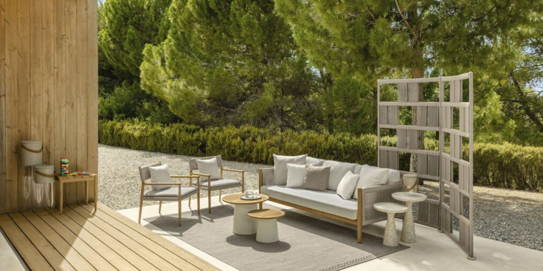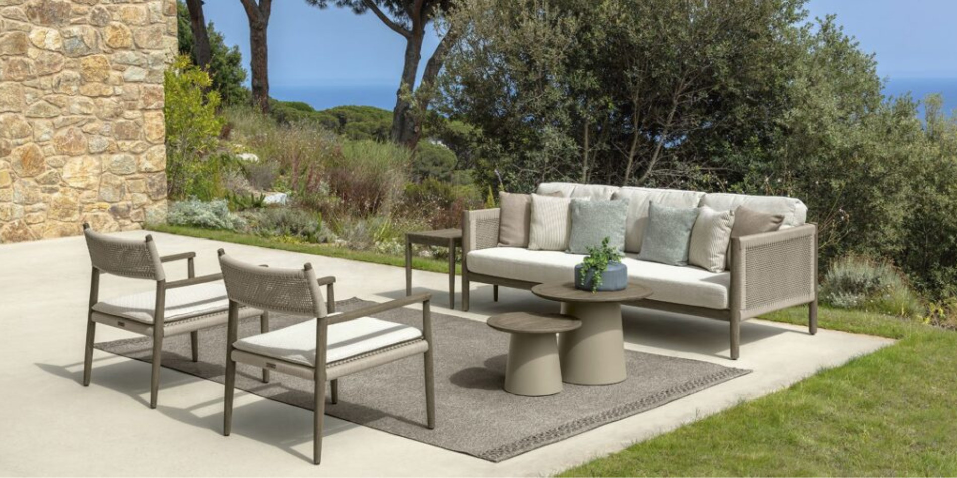 The 3-seater Dolcevita sofa is a tribute to the warm summer evenings. Every detail, from the dense weave of ropes that characterizes the wall bars and armrests, to the finishes of teak wood, is designed to recall the lightness of the sweetest season. A perfect solution for a relaxing area in the garden that has a touch of freshness. The wide choice of pastel colors allows you to adapt this piece of furniture to any open space.