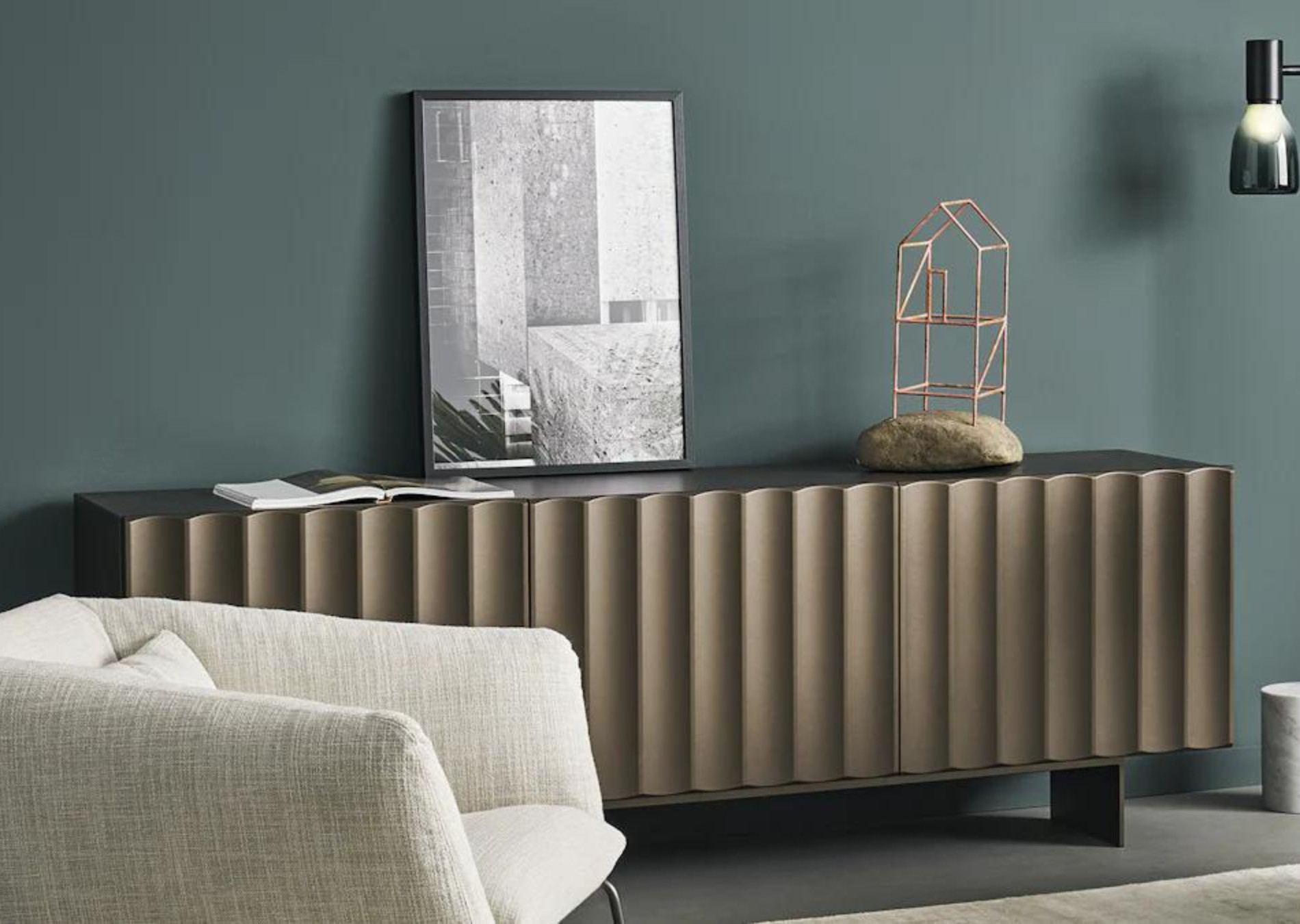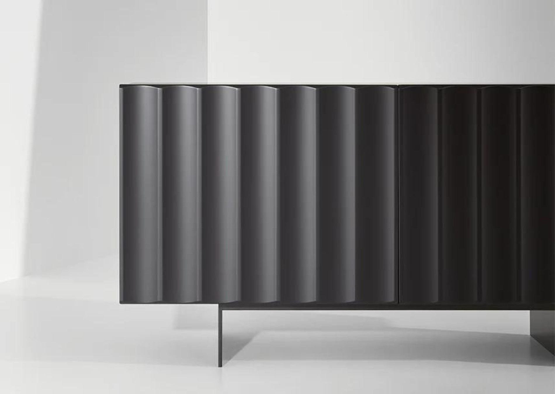The signature feature of the Dorian contemporary sideboard is the wide vertical groove highlighted in its doors. The sense of movement thus created by the doors of the Dorian sideboard breaks up the linearity of the wall on which it rests, thus adding visual appeal to the intrinsic function of the sideboard. The doors and frame of this sideboard are made of wood, a material which adds elegance to the overall look, painted in white, bronze or lead finishes. The base is available in the version with two feet for a lighter visual effect or in the version with a plinth for a more compact look.