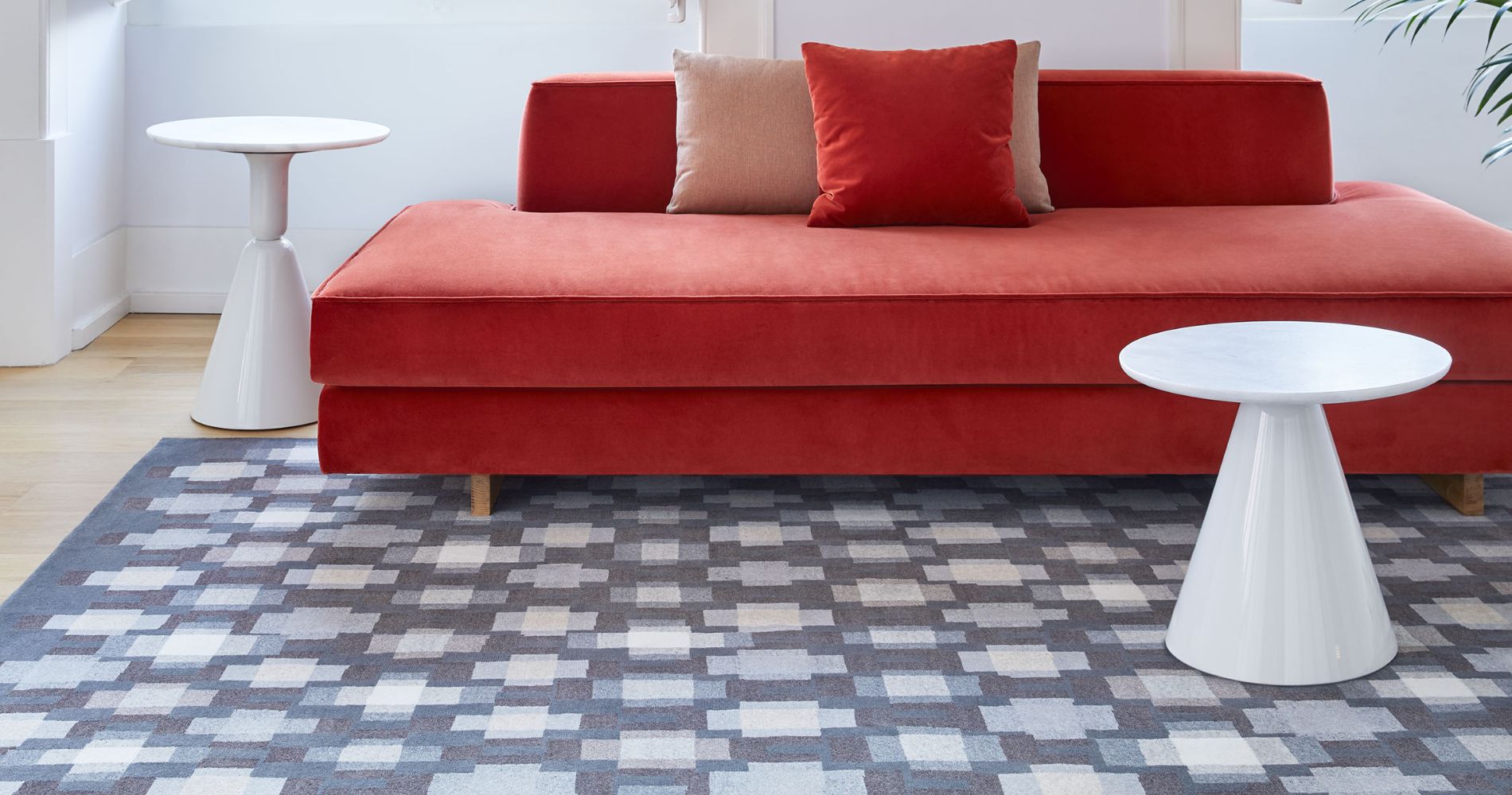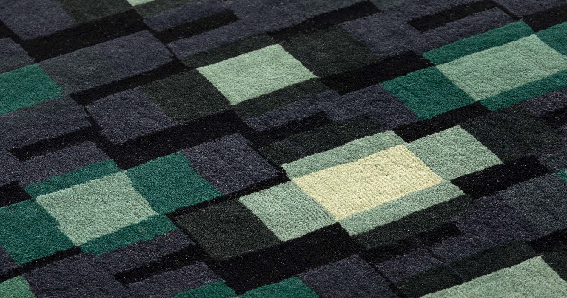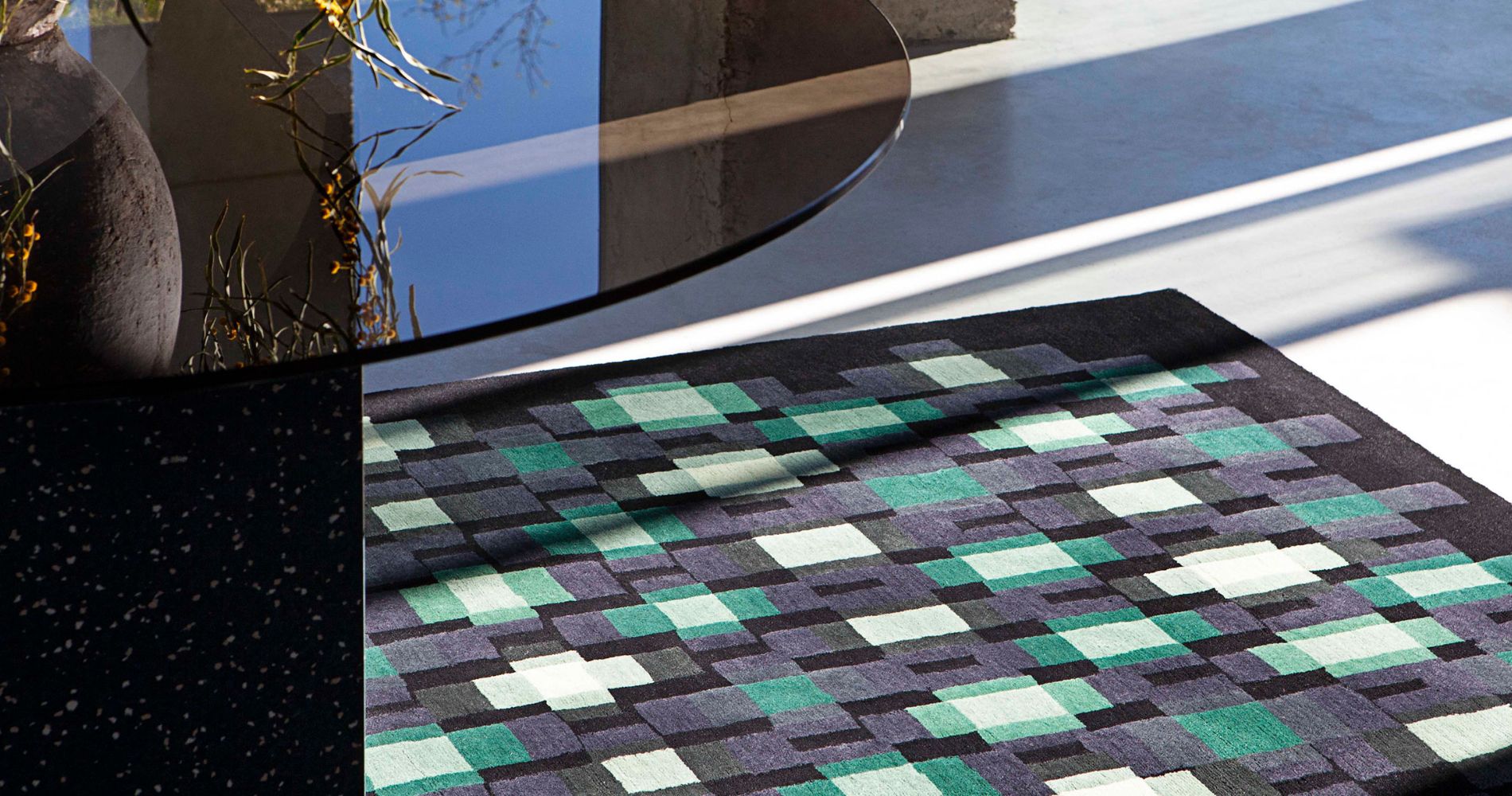This collaboration with Samuel Wilkinson follows a repeating pattern of crosses that appear to subtly vibrate. The notion of echo resonates in every inch, generating an interesting effect of depth. ECHO, available in three colors –Green, Red and Grey– and three different sizes, is made of hand-knotted wool.