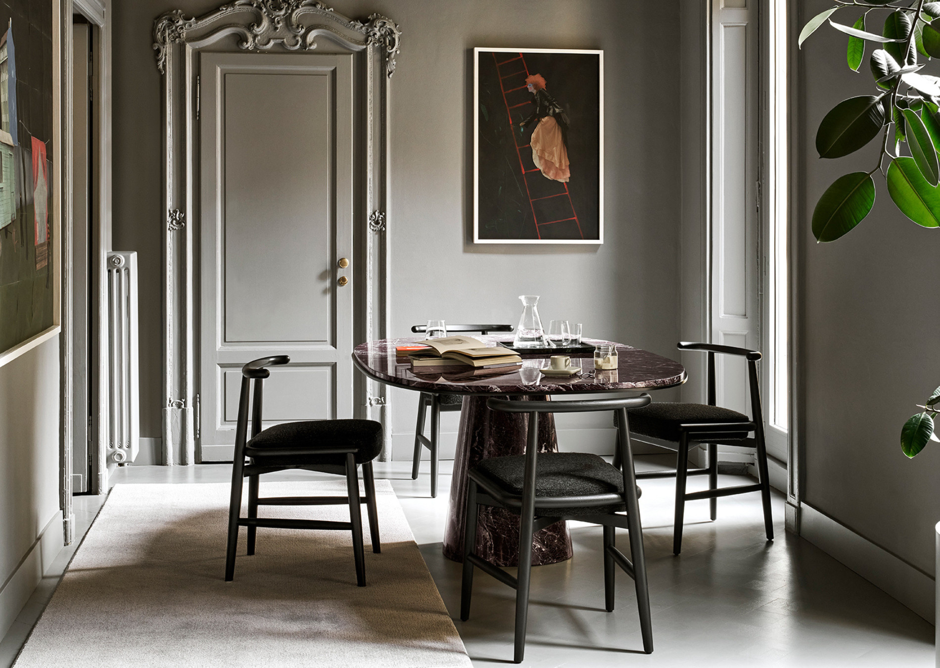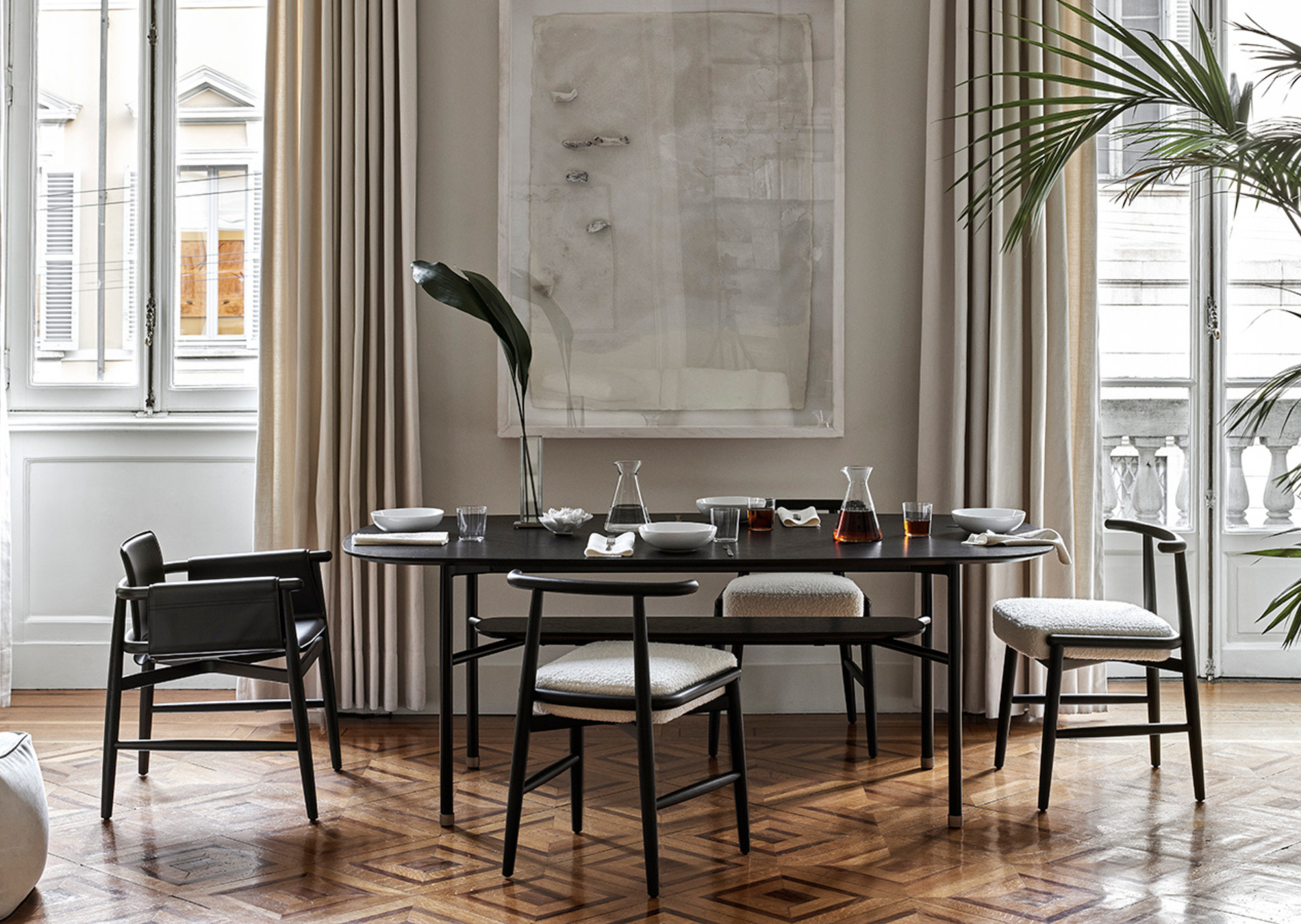 A well-defined and visually light appeal characterize the Emilia chair; this collection stands out for its small sized and well-balanced proportions and its essential solid wood structure, whose warmth perfectly combines with the soft, rounded shapes. More contemporary in the wooden version, it becomes more elegant and refined in the glossy or matt lacquered versions expressing the brand’s eclecticism. For the Emilia chair two different kinds of seats are available: an upholstered version with textile or leather cover; a second version in saddle-leather for a more decided, rigorous look.