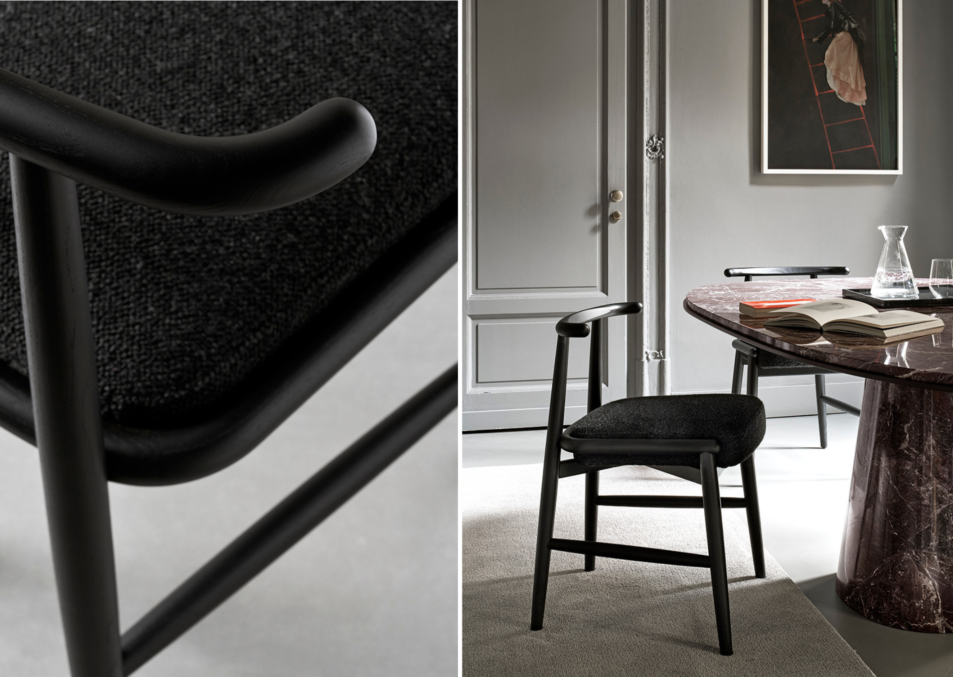 •frame in solid ash, black – tobacco – white stained frame in solid beech matt or glossy lacquered – for colours, see sample box