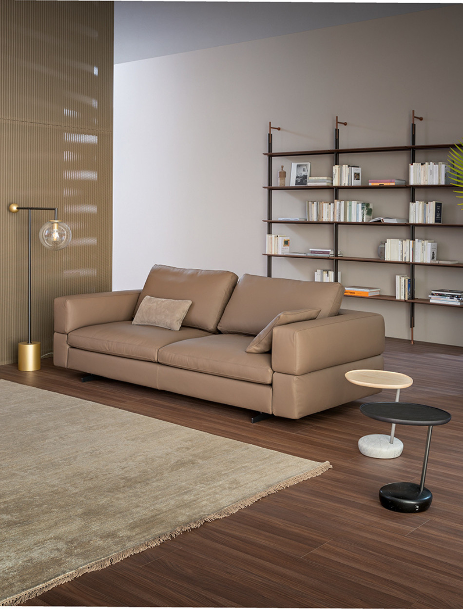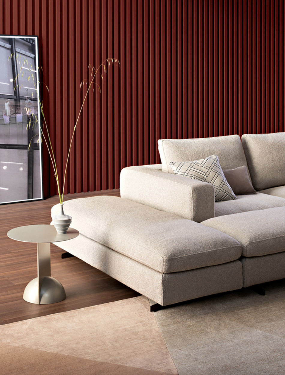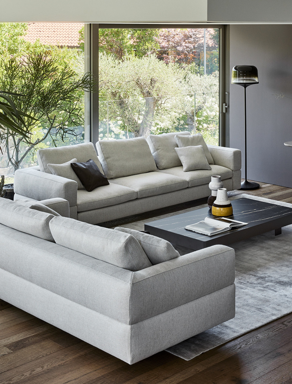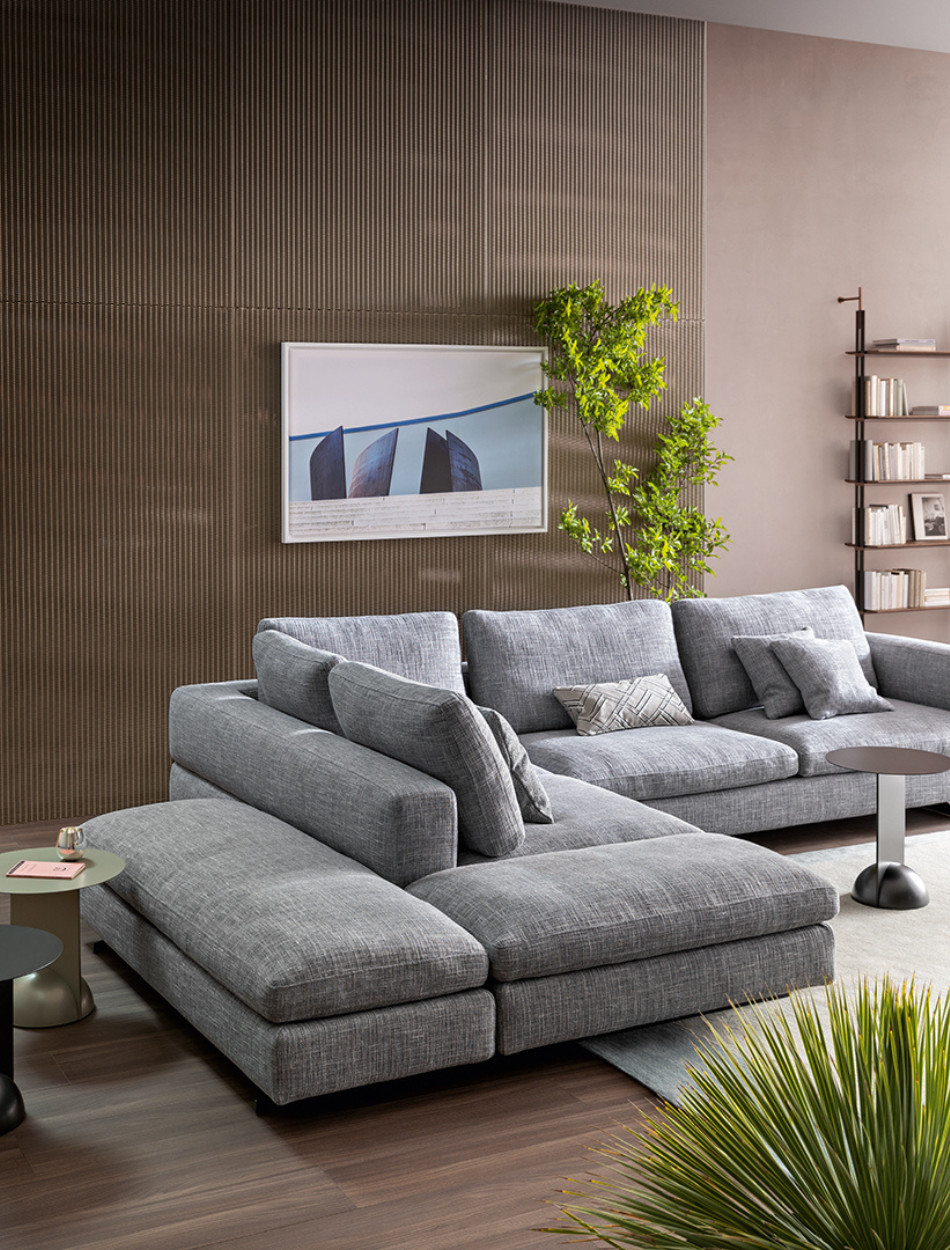 Ever More stands out for its particular backrest, which embraces the seats and gives the living area a note of softness and elegance. The keyword is maximum personalisation. Thanks to the many elements from which it is possible to choose, it is an extremely versatile modern sofa with high back which adapts to every style or space requirement. Indeed, it is possible to create the perfect sofa composition combining a wide range of modules, such as poufs, corners and chaise longue: the backrest, therefore, becomes a true “trait d’union” of an island with 360° freedom. Ever More can be also placed at the centre of a room, to create a convivial space. The upholstery is completely removable.