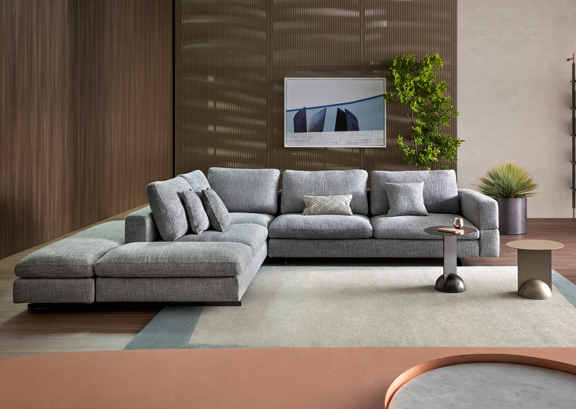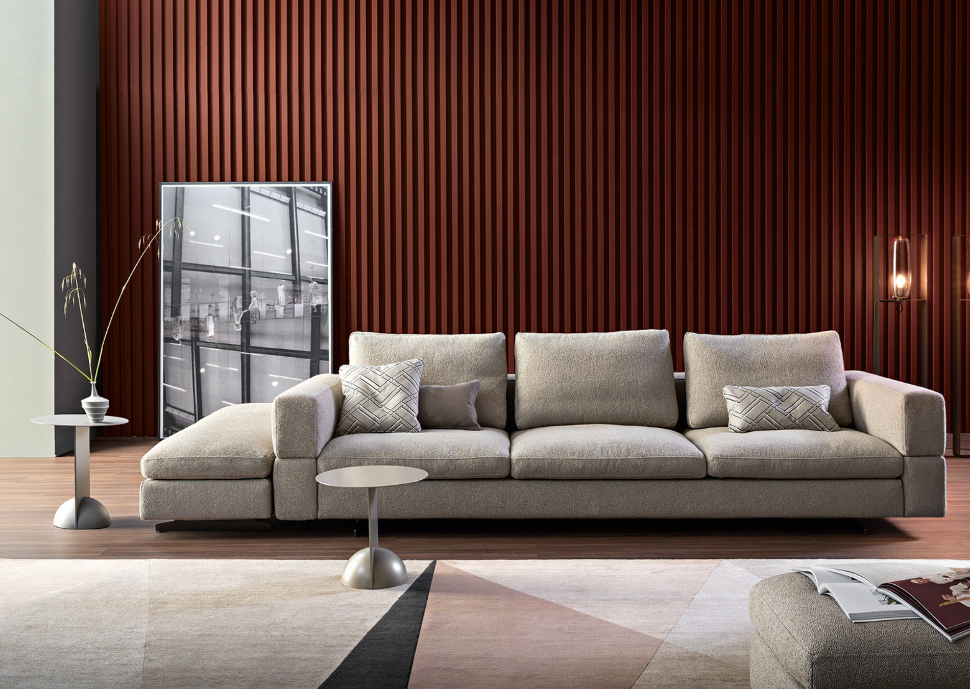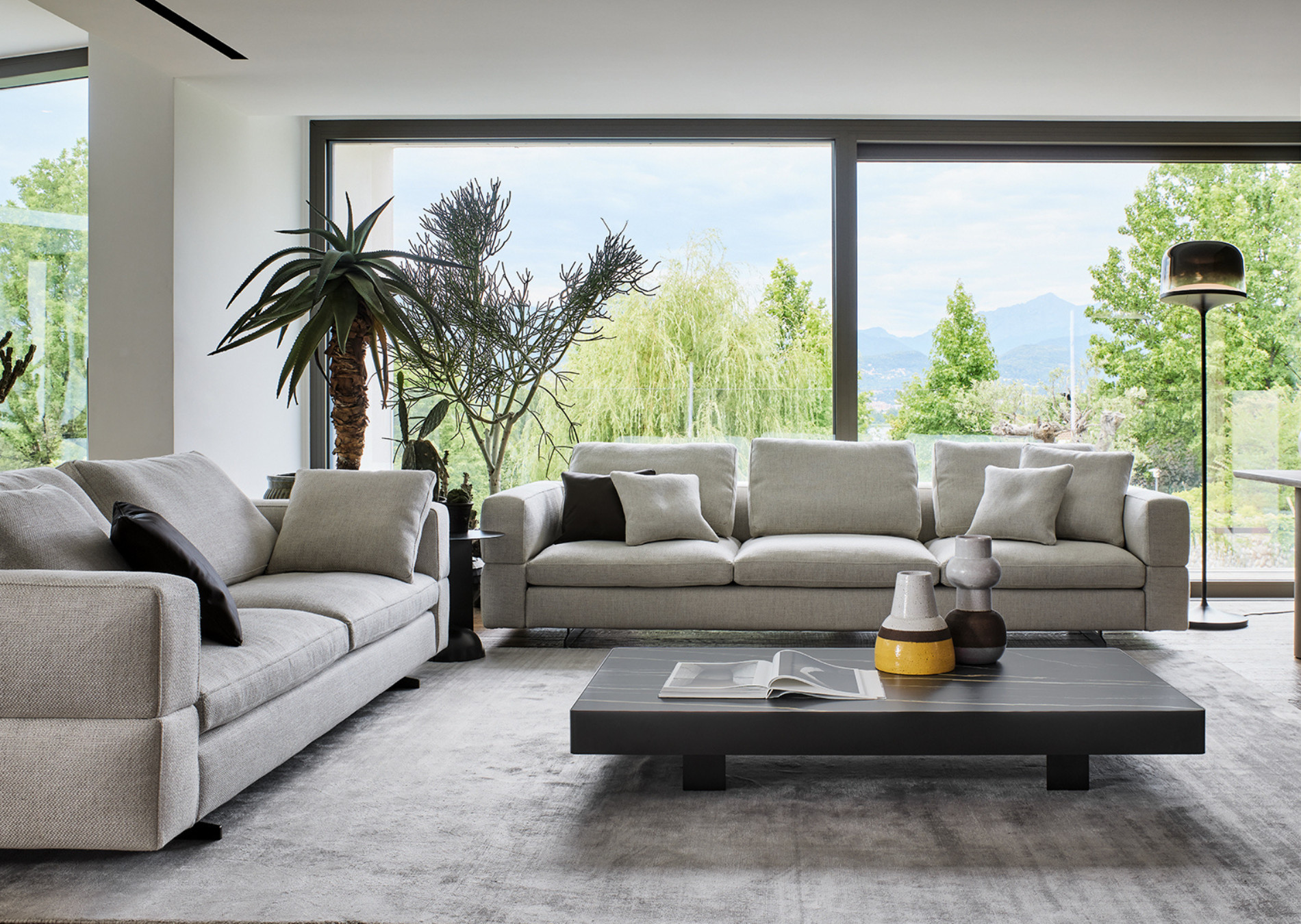 Ever More stands out for its particular backrest, which embraces the seats and gives the living area a note of softness and elegance. The keyword is maximum personalisation. Thanks to the many elements from which it is possible to choose, it is an extremely versatile modern sofa with high back which adapts to every style or space requirement. Indeed, it is possible to create the perfect sofa composition combining a wide range of modules, such as poufs, corners and chaise longue: the backrest, therefore, becomes a true “trait d’union” of an island with 360° freedom. Ever More can be also placed at the centre of a room, to create a convivial space. The upholstery is completely removable.