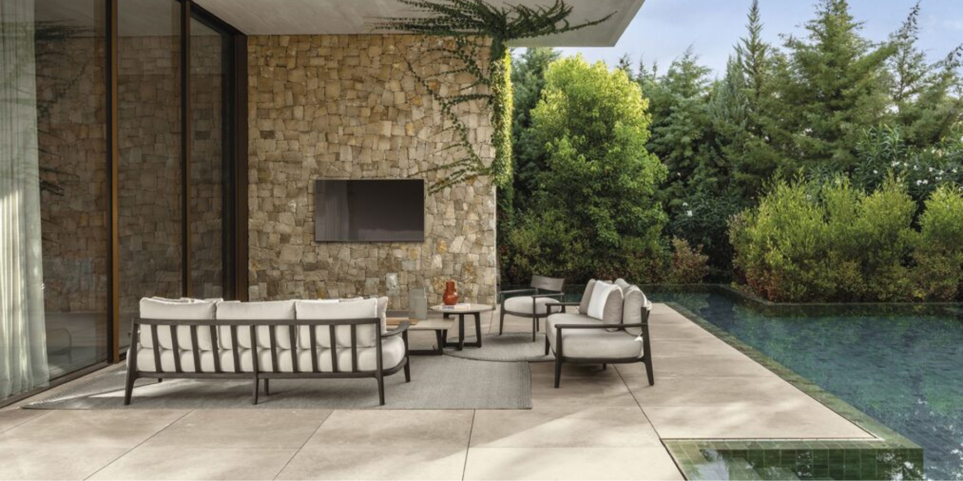 The Ever 3-seater sofa wins the relentless test of time, thanks to its minimal elegance, forward-looking design and durable materials. The soft lines, the roundness of the cushions and the essential composition, allow you to fit naturally in outdoor environments, adapting with skill to different styles and eras. The neutral color range in which it is available, gives the outdoor living an authentic and evergreen style.
