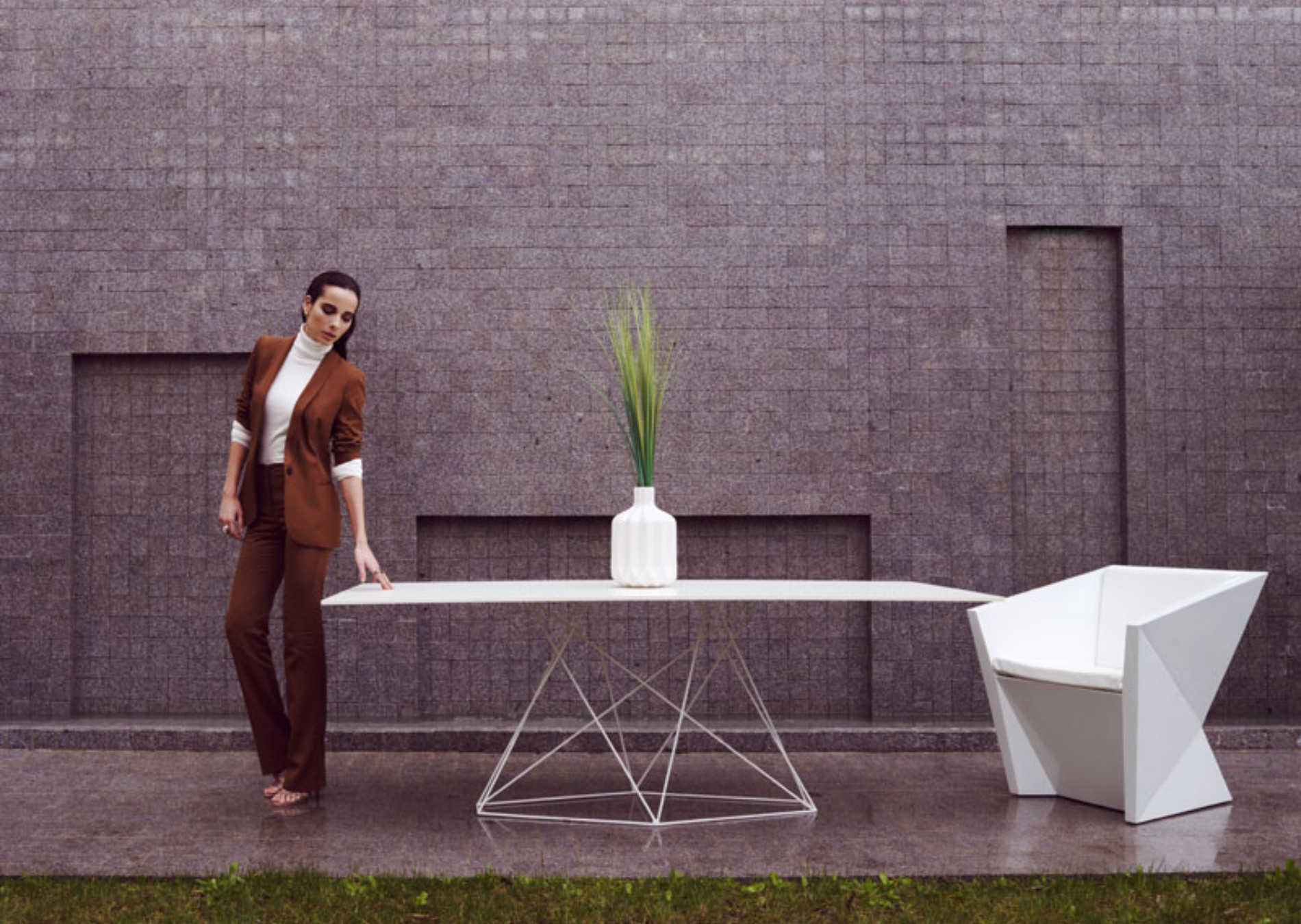 Faz is a modular collection of outdoor furniture and planters designed by Ramón Esteve for Vondom. He is the architect of harmony, serenity, timelessness and universality, and he has created mineral and emphatic shapes that make Faz a design that contextualizes with homes and installations. An ambience, encircling as a result of the blissful combination of the material and lighting, so that the sole sensation would be its fusion.