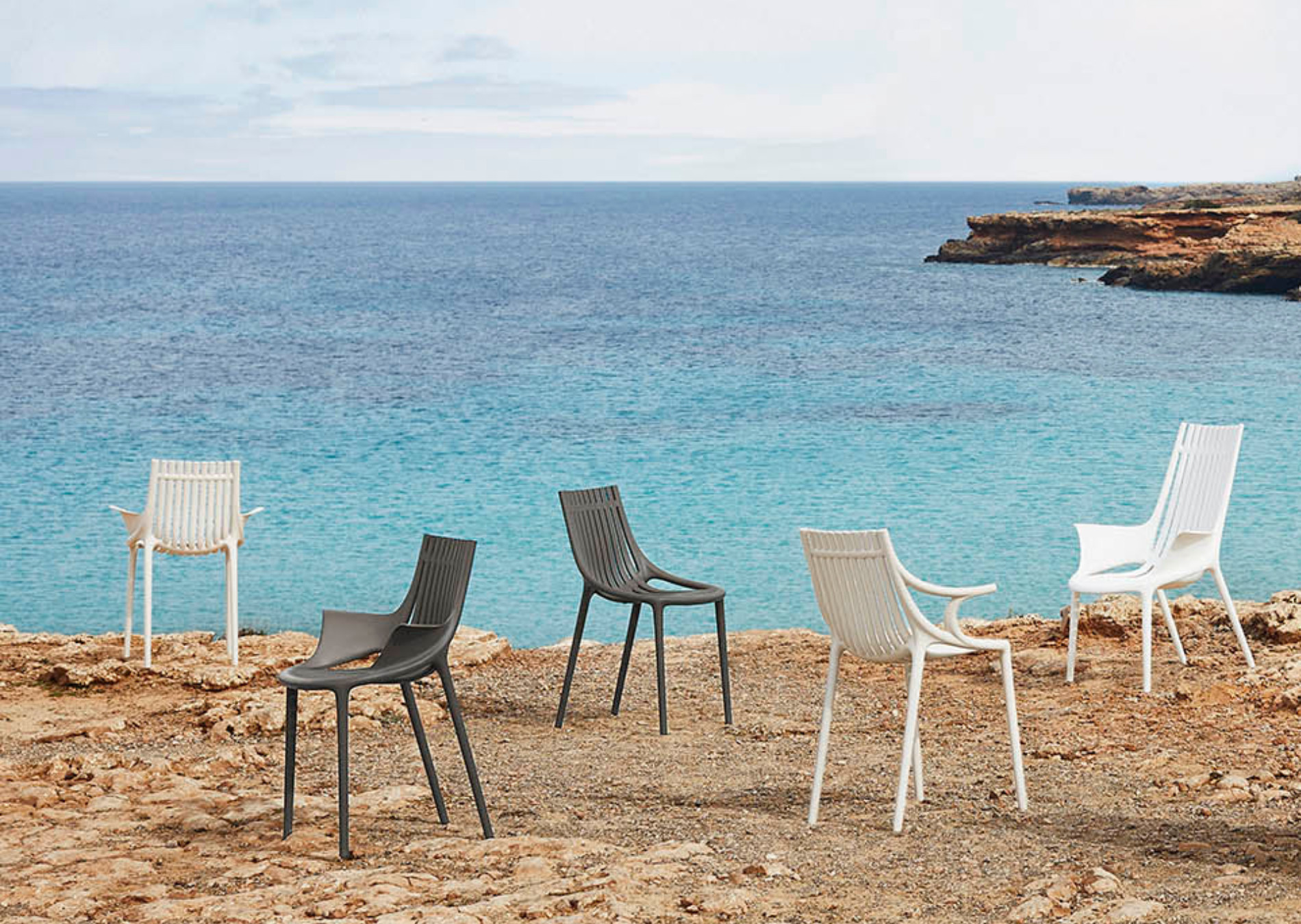 From the ephemeral beauty of a season to an everlasting piece to keep this moment of a dream in a permanent frame. Observing the plastic objects brought by the sea, like artificial shells, it inspired me a unique designer furniture collection made of recycled plastics from the island. Ibiza is an emotional state of mind. Together with Vondom, this dream has become true: Ibiza eco-collection is born.” by Eugeni Quitllet