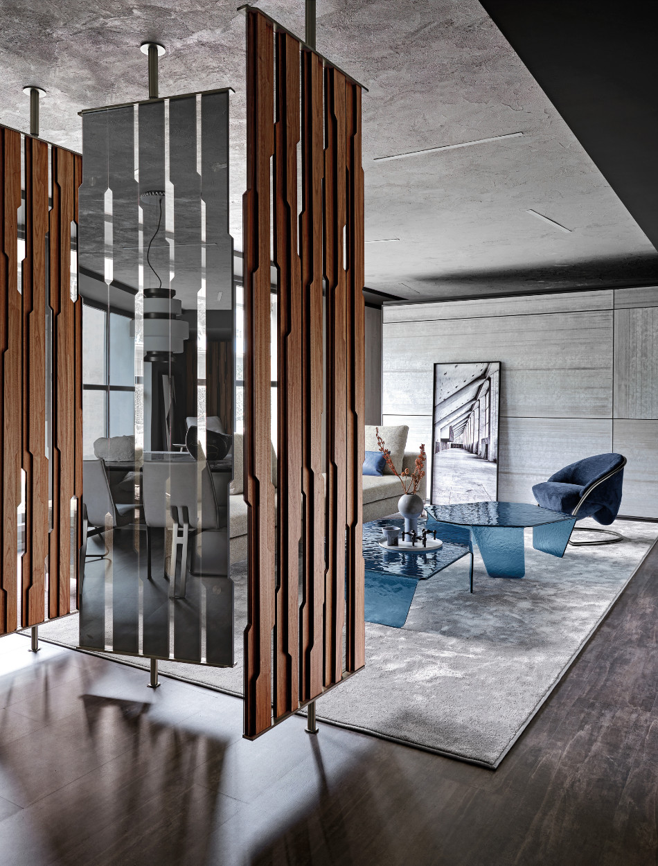 Naturally, partitions are about creating divisions in space, allowing new perspectives and illusions thanks to the mirrored element as part of the material choice. The result? A combination of function and form that reveals new ways to look at your room depending on where you place and use it.