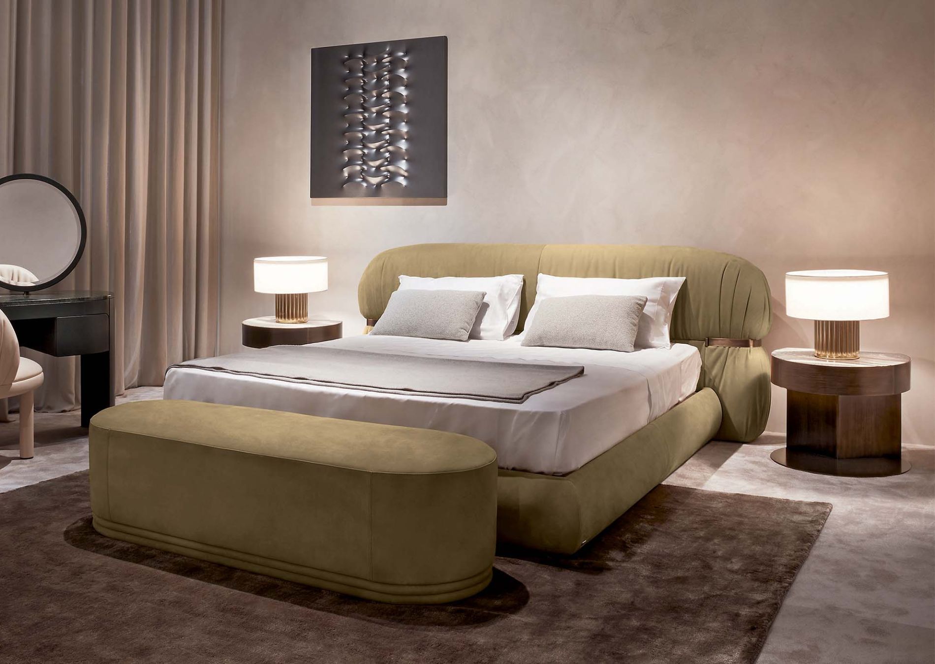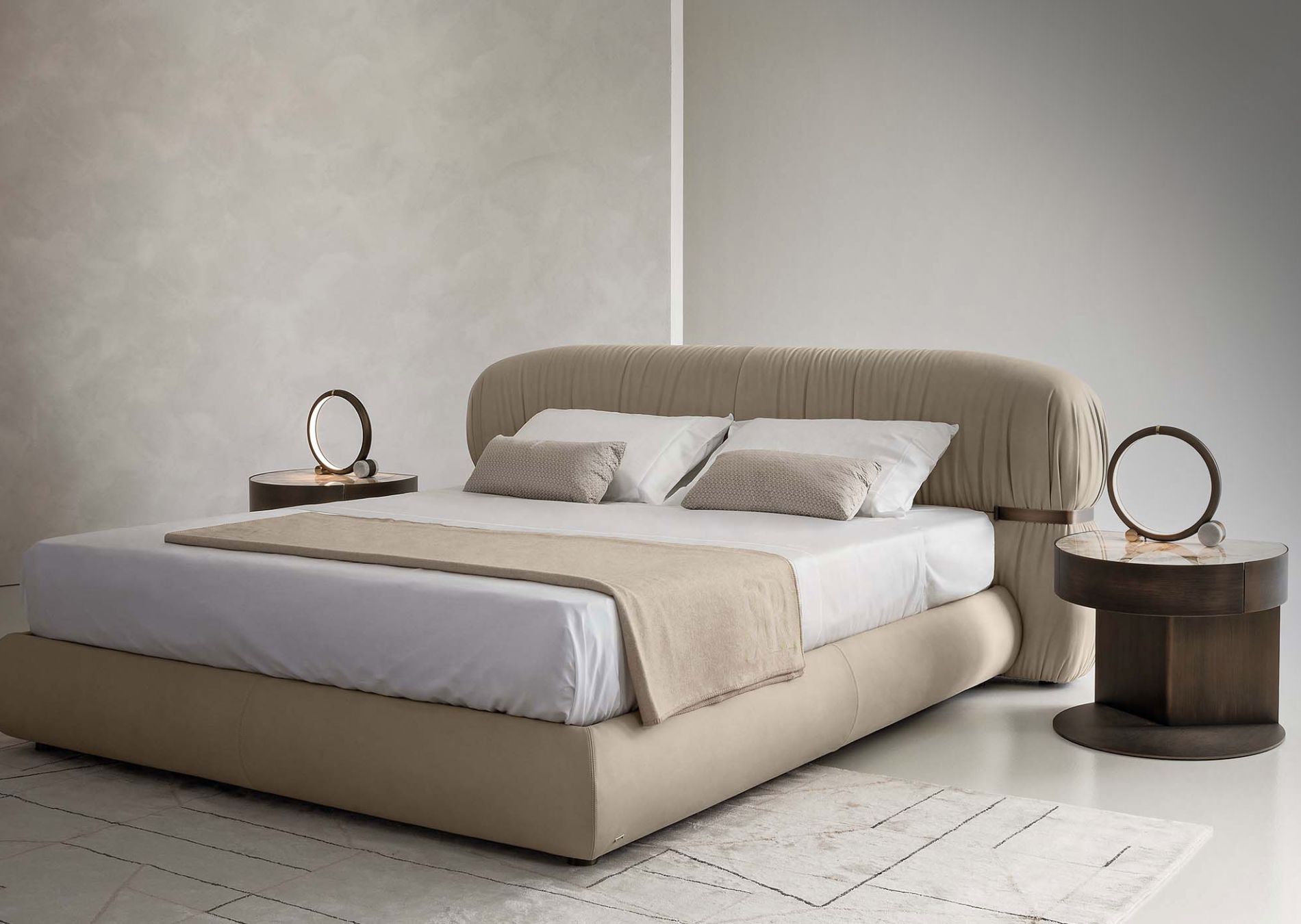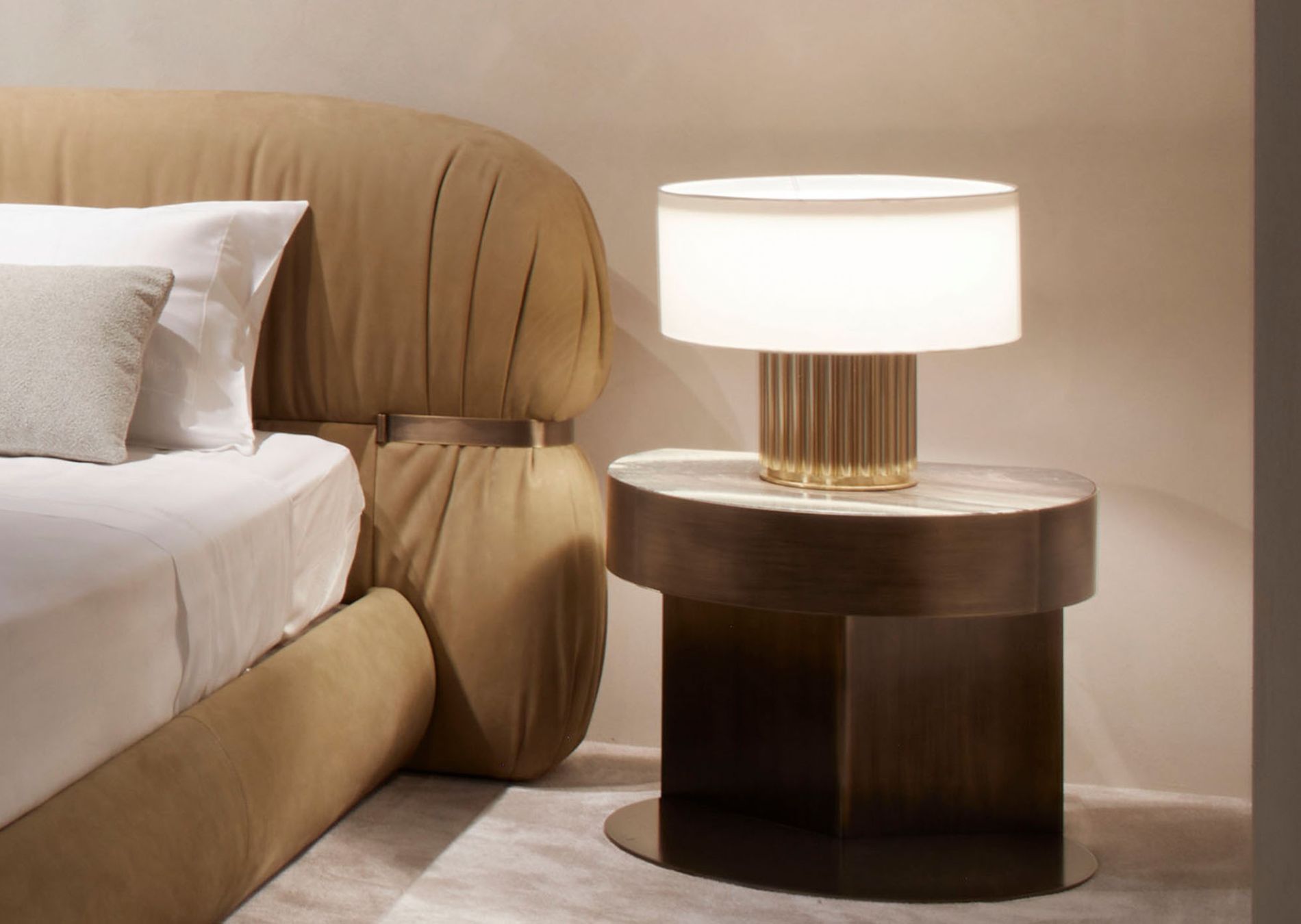 The Inca bedside table combines precious materials and finishes for a sober and elegant design capable of offering new aesthetic-functional solutions. Both elements, top and base, have rounded geometries that give a sense of solidity and yet lightness to the product.