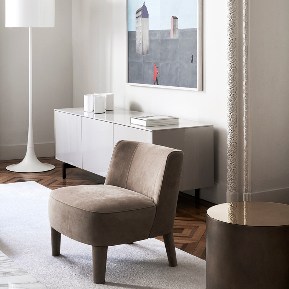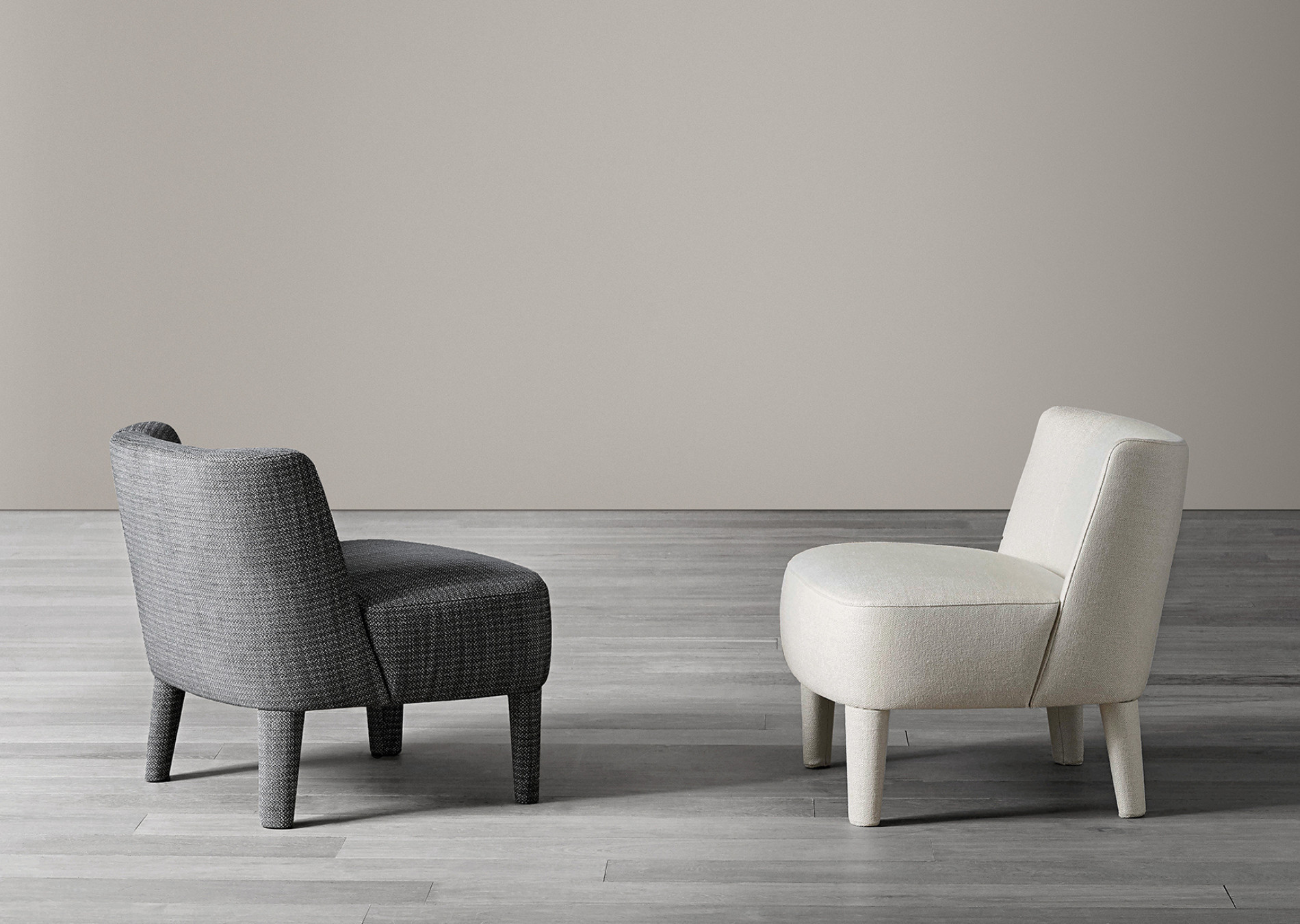 Perfect for contract, but easily suitable for domestic use, Isabelle small armchair is defined by a mono-materic seat, its small dimensions make it perfect for any interior.