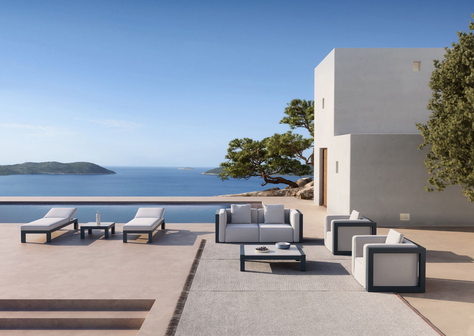 ISLABLANCA reflects the fascination of its creator José A. Gandía-Blasco Canales for the Mediterranean lifestyle. Starting with robust structures that evoke the geometry of the island’s traditional architecture, the designer created a collection of outdoor furniture that invites you to socialize in connection with nature.