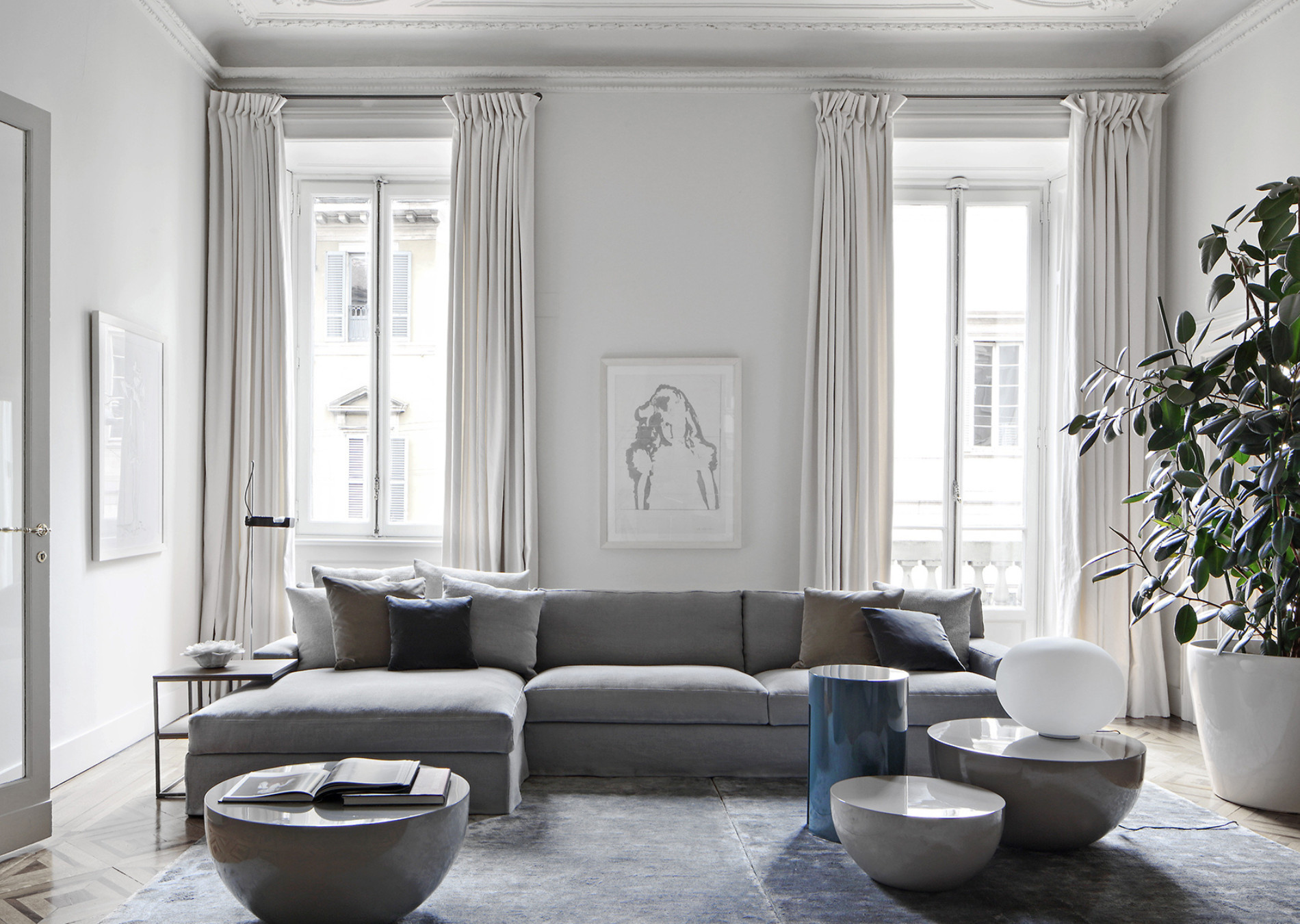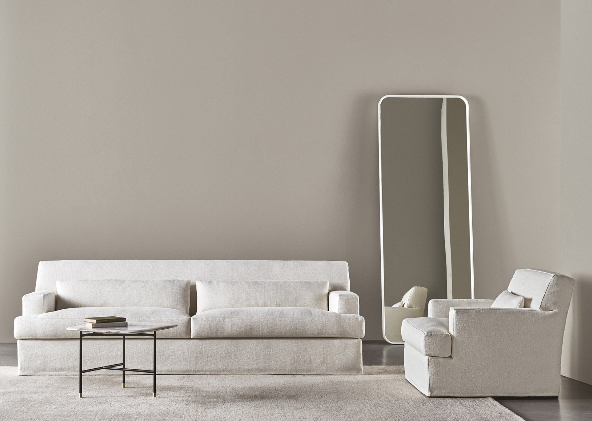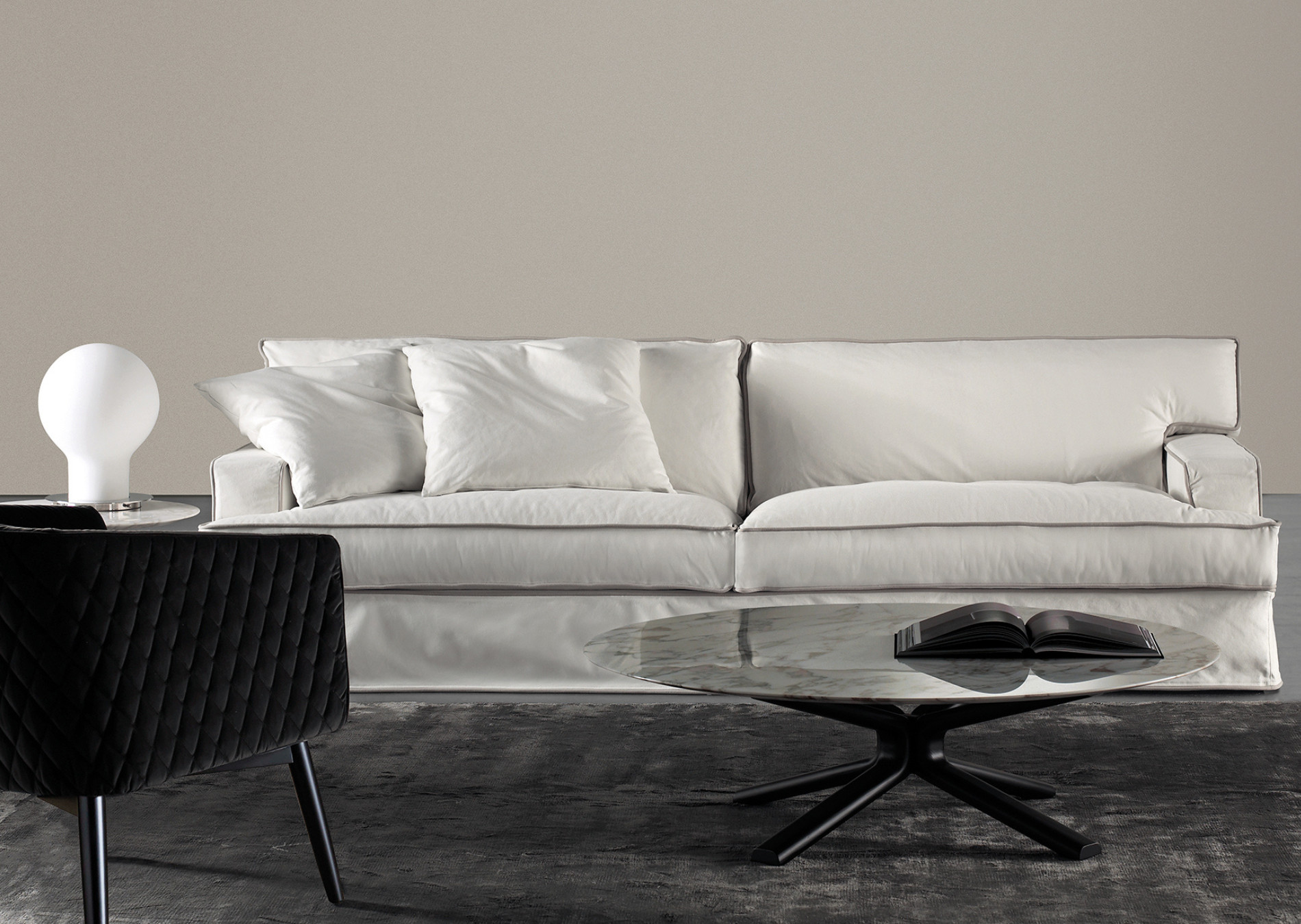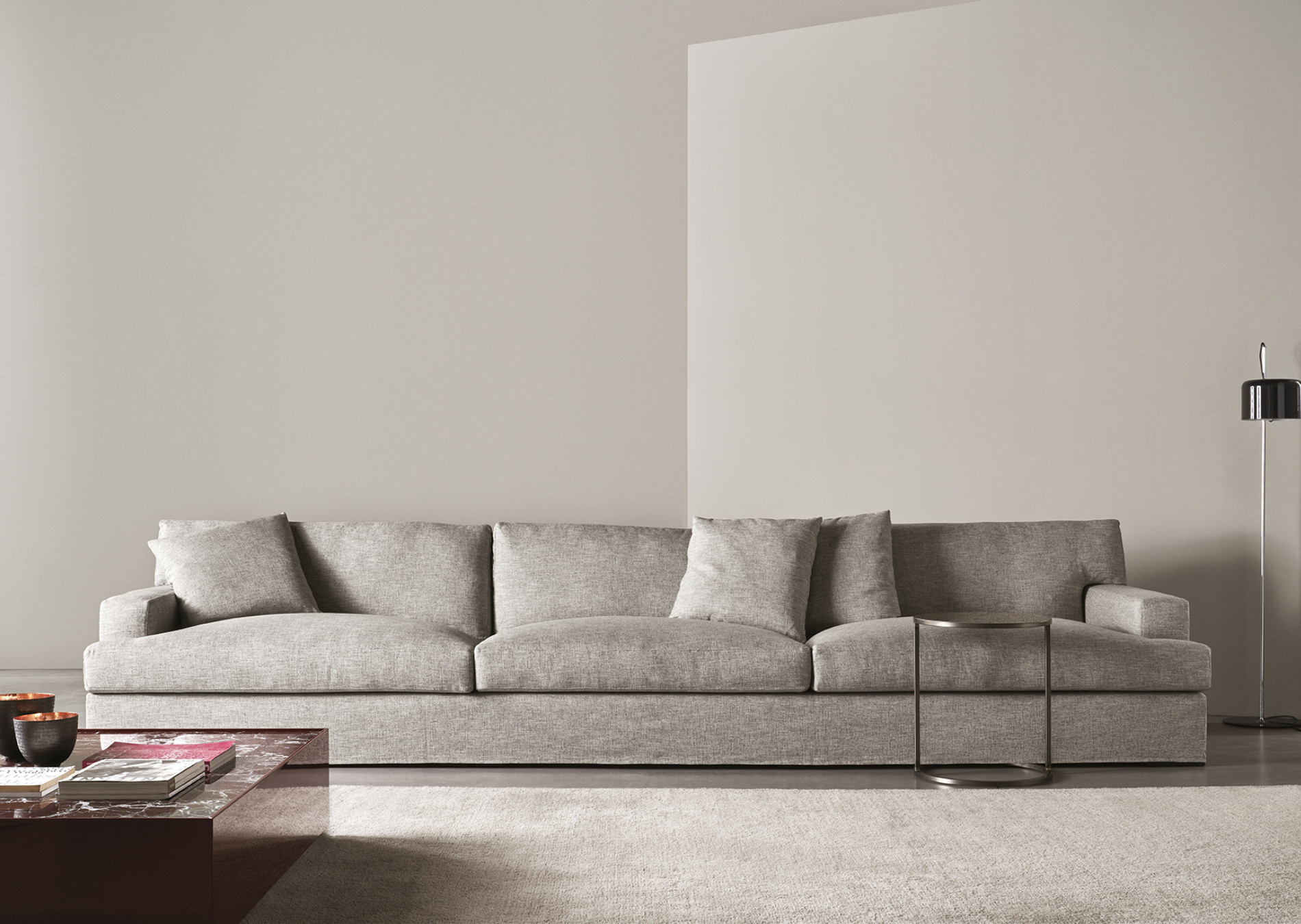 A unique ploy of comfort and beauty, of a contemporary look and tribute to the past and memory. James collection, showing pure lines and soft covers, is made recognizable by the slightly slanted backrest which defines all the line. Perfect for relax, the deep seating may result suitable also for reading or for conversation. This collection includes sofas, modular units, an armchair, in the Slim version, and a sofa-bed.