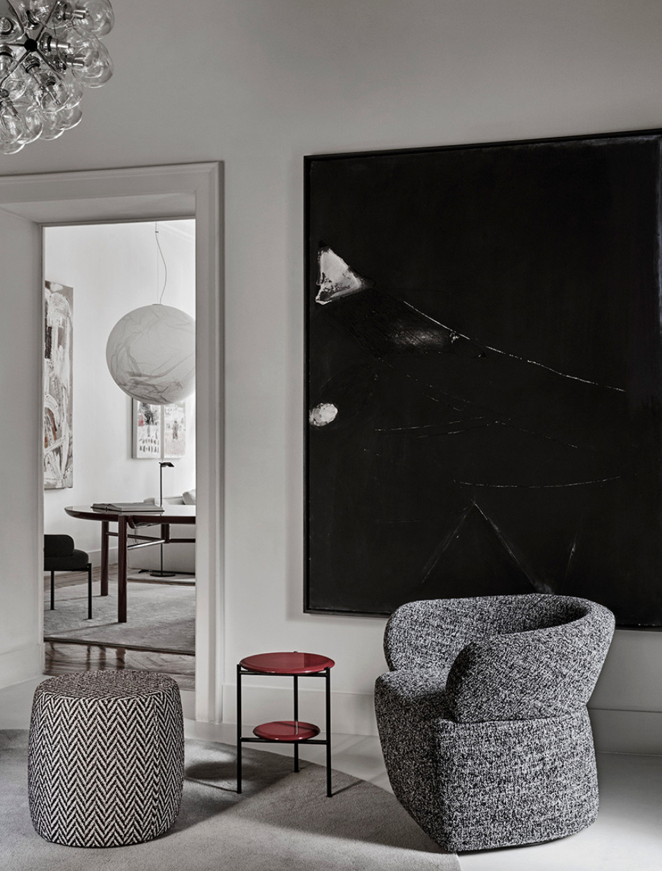 Josephine, direct heir of the Joseph sofa, is imagined with a double look: a more bourgeois and elegant, completely tight one, and another more casual, entirely quilted one. In addition, a practical swivel base characterizes it.