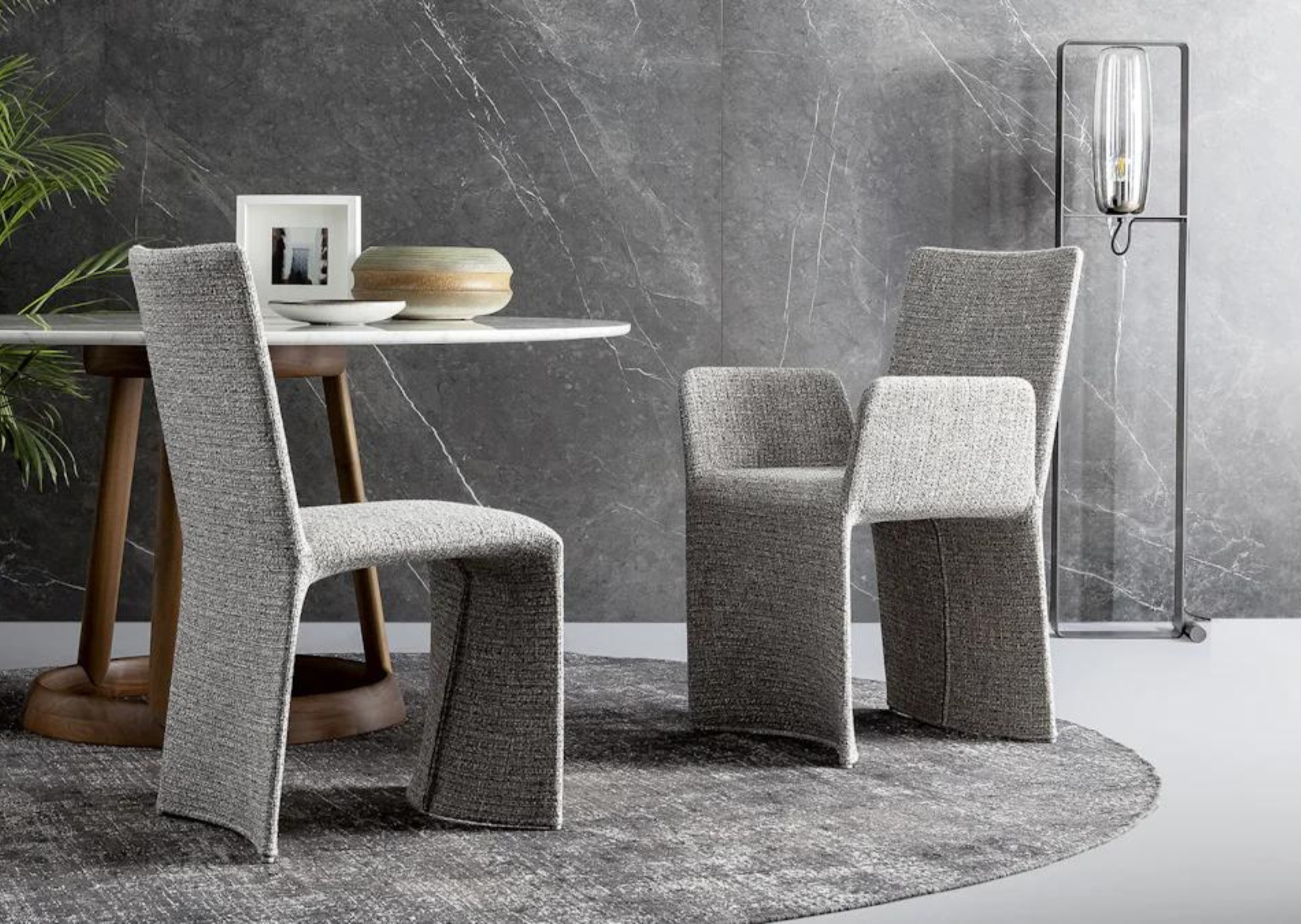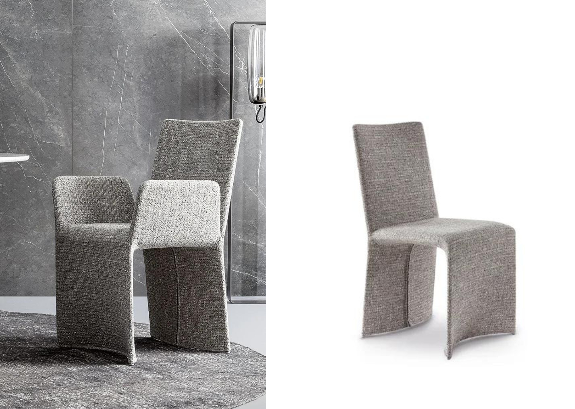Ketch is an elegant padded chair designed by Bartoli Design with shapes that are curved and stretched at the same time, with no interruptions. The metal frame and comfortable padding are upholstered with leather, eco-leather or fabric, which are fully removable. Also available in the Miss Ketch variant (with armrests), that can be combined for a functional and aesthetically consistent result. Characterised by generous and welcoming proportions, the collection has a shape that is clean and essential, embellished by the great quality of the upholstery and the slender and dynamic design that derives from its unusual inspiration. This gentle elegant chair solution is at home in sophisticated domestic environments: perfect for the dining area, it manages to dialogue with different styles and worlds.