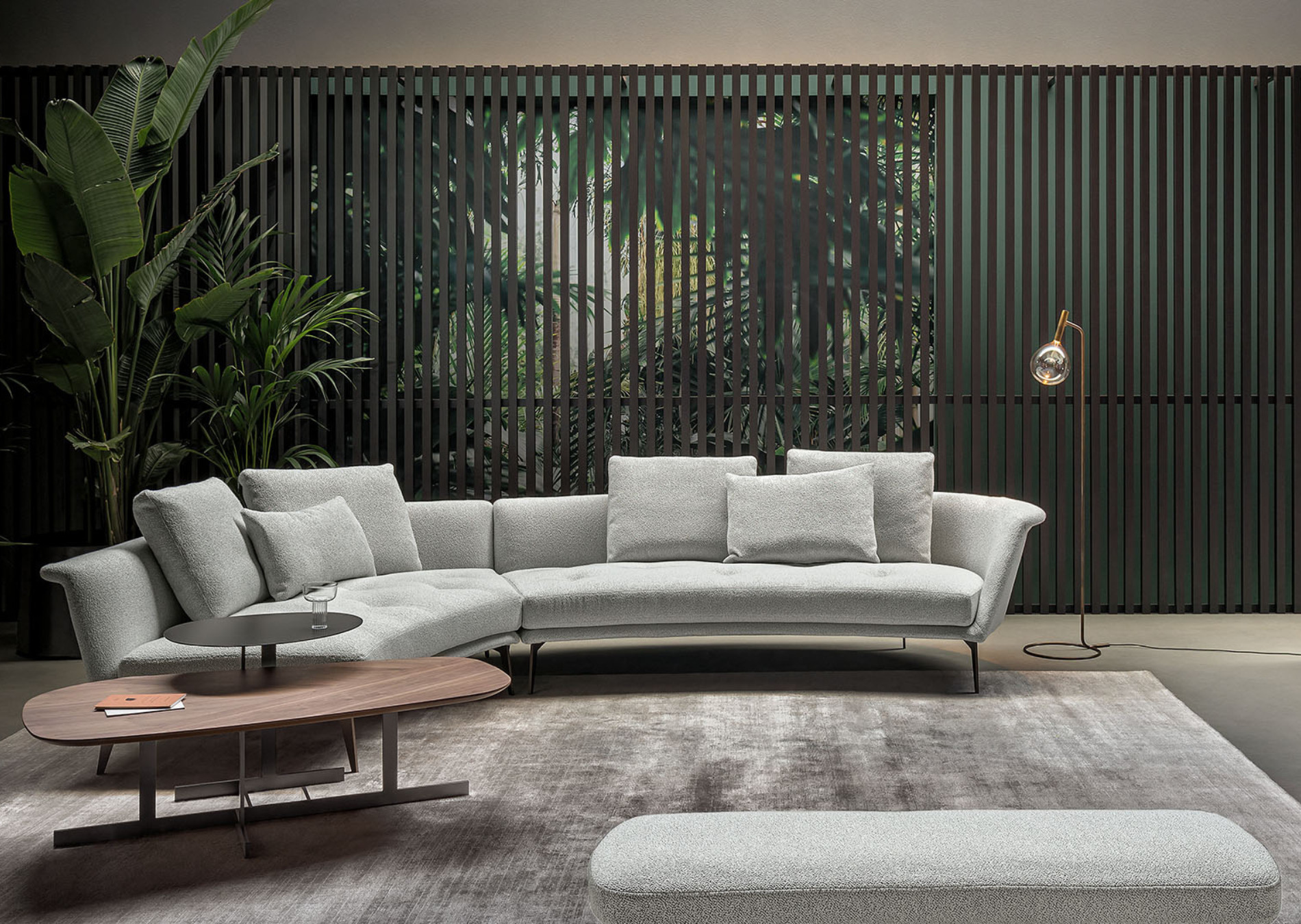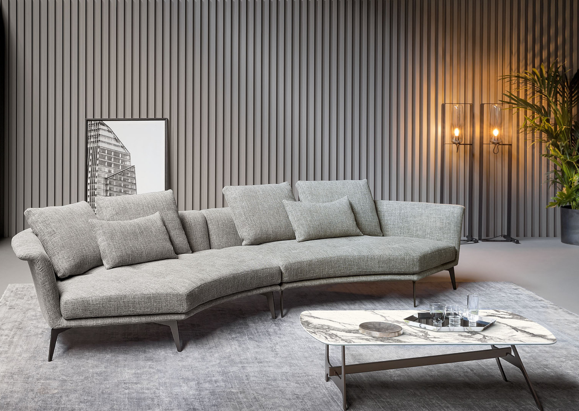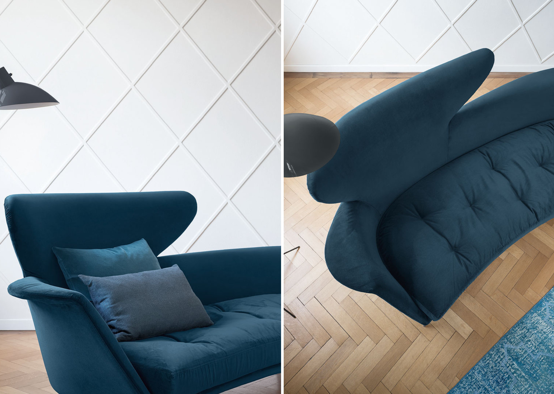 Lovy is a fixed sofa with an unusual silhouette: whose the semi-oval shape encourages. Perfect for contract settings, its particular shape makes it ideal for use in the middle of the room. In the modular version, the Lovy contemporary design sofa becomes even more customisable thanks to the various elements that allow it to be adapted to different spaces. The body is upholstered in removable fabric and the metal base is available in numerous colours and finishes. The vast success that this model has enjoyed has inspired Bonaldo to introduce a complete Lovy collection, thus making it possible to create perfectly coordinated environments with the same original style connotations: Lovy hi (with high backrest), Lovy low (with, low backrest), Lovy ego (quilted), Lovy armchair (with high or low backrest) and Lovy pouf (roud or square). The new and different modular elements allow the Lovy sofa to adapt to spaces and create customised solutions according to everyone’s aesthetic needs.
