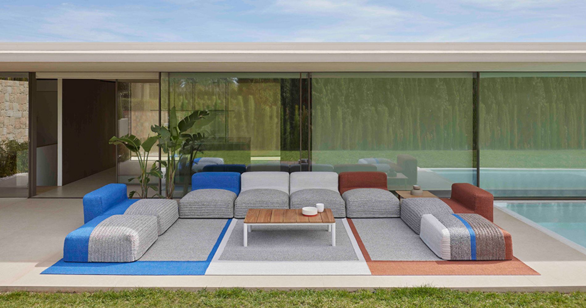 The iconic MANGAS ORIGINAL and MANGAS SPACE collections, designed by Patricia Urquiola, marked a before and after in the world of design with their modular and three-dimensional elements. Now, MANGAS OUTDOOR reflects the same volume, texture, and comfort with materials specially designed for outdoor use -including rugs and covers made by hand with 100% recycled PET. “We chose colors that evoke the natural landscape, such as terracotta, stone grey, white, and touches of blue,” Urquiola relates.