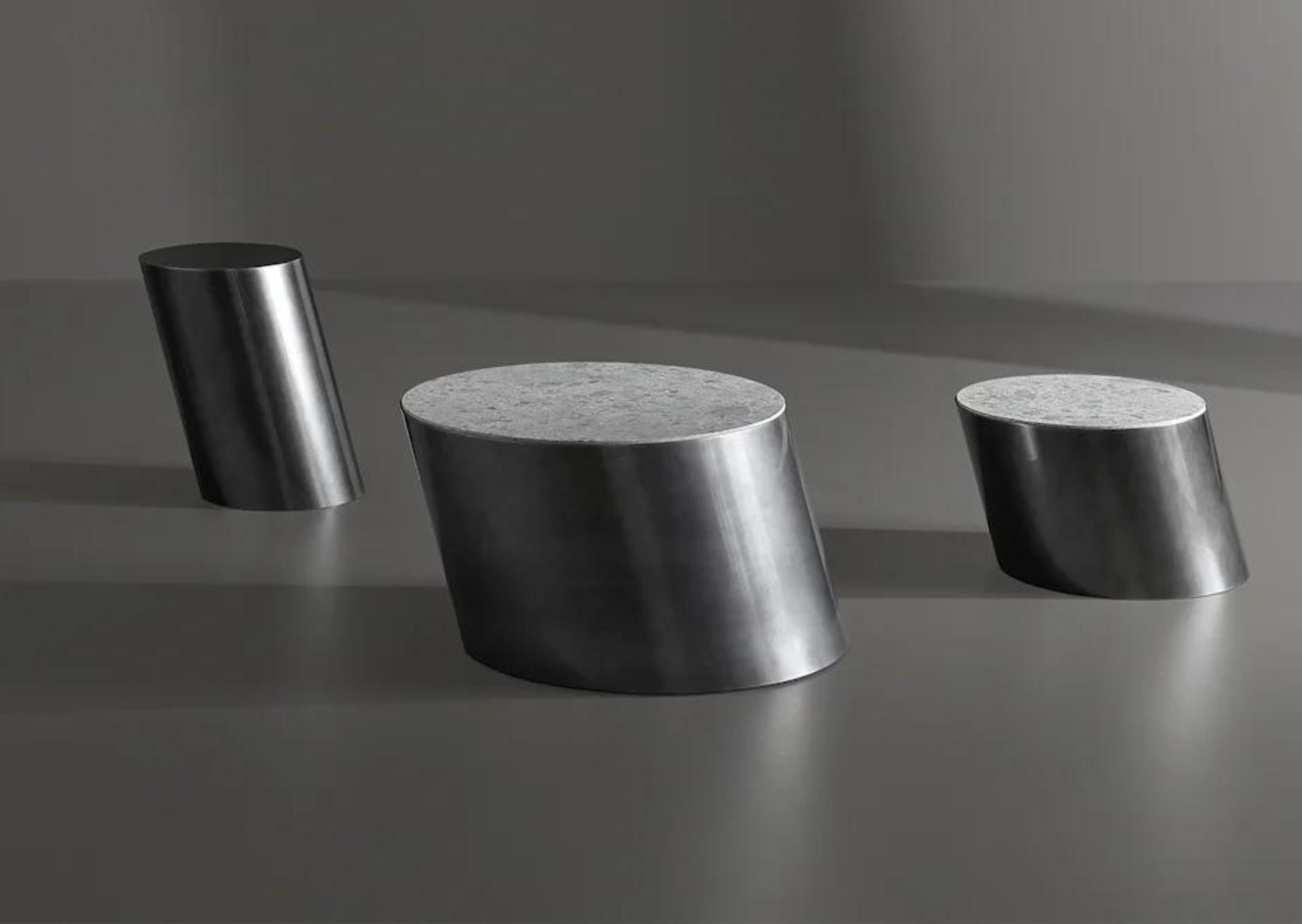 The Pisa coffee tables, designed by Mauro Lipparini, are furnishing accessories with a strong character, thanks to the monolithic design of their bases. Available in the single block version with a recessed or cap-like top, the signature feature is the angle of the base which leans diagonally like the tower after which they are named. Metal, used for the base, is the common thread running through the collection: the minimal decor coffee table assumes its own identity based on the material used for the top, available in ceramic, glass, marble or metal in the same finish as the base.