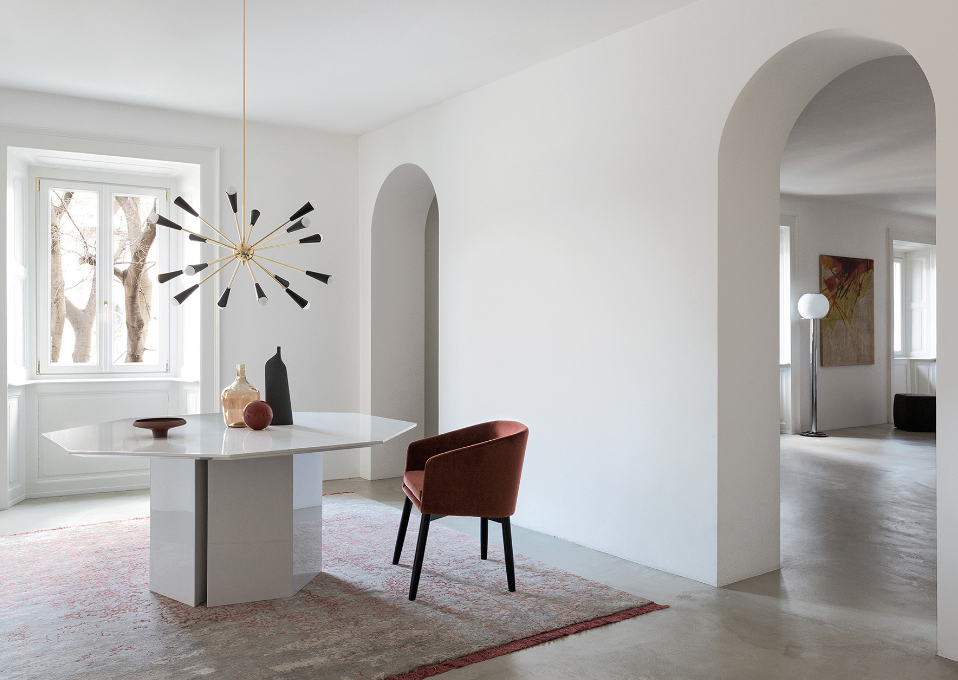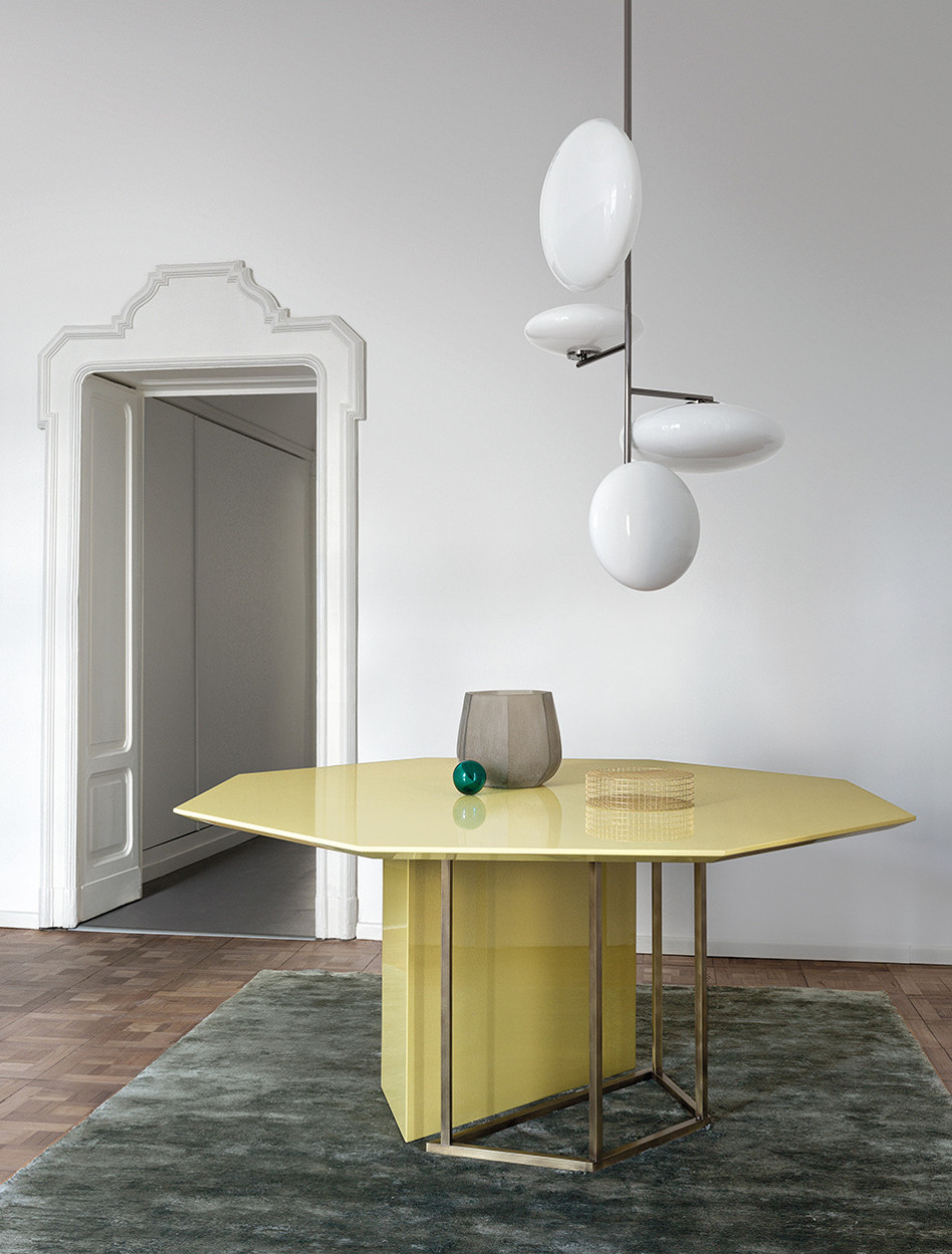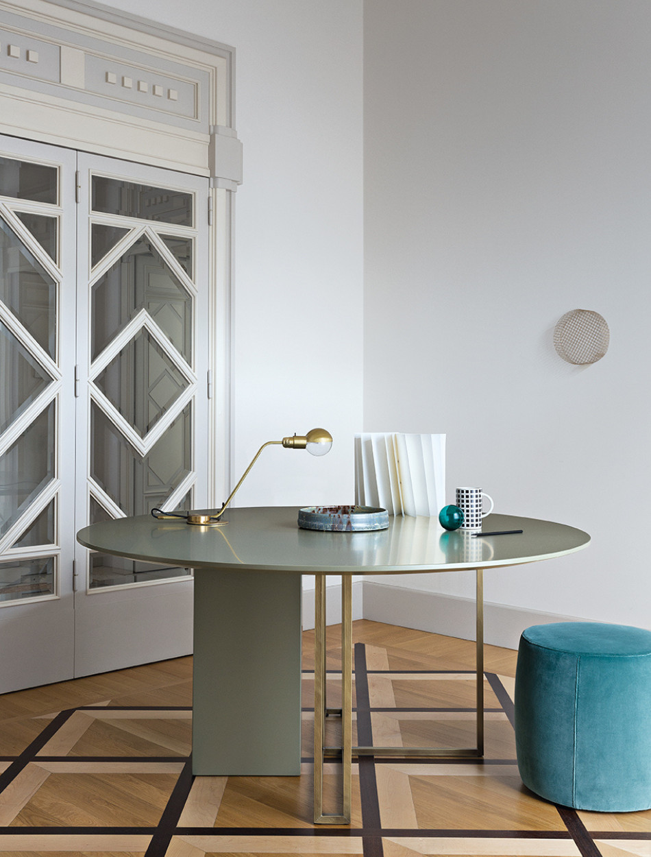 A shape and a name that recall stability and planning: from Latin ‘plinthus’, the Plinto collection refers to the architectural element that serves as a support for columns. A sculptural table marked by three elements: a monolithic base, a light structure and a top, each of them available in different shapes and materials allowing many different configurations. The versatility of this collection and its almost endless possibility of personalization mark this iconic collection, without forgetting the neat lines and a balanced design in each version.
