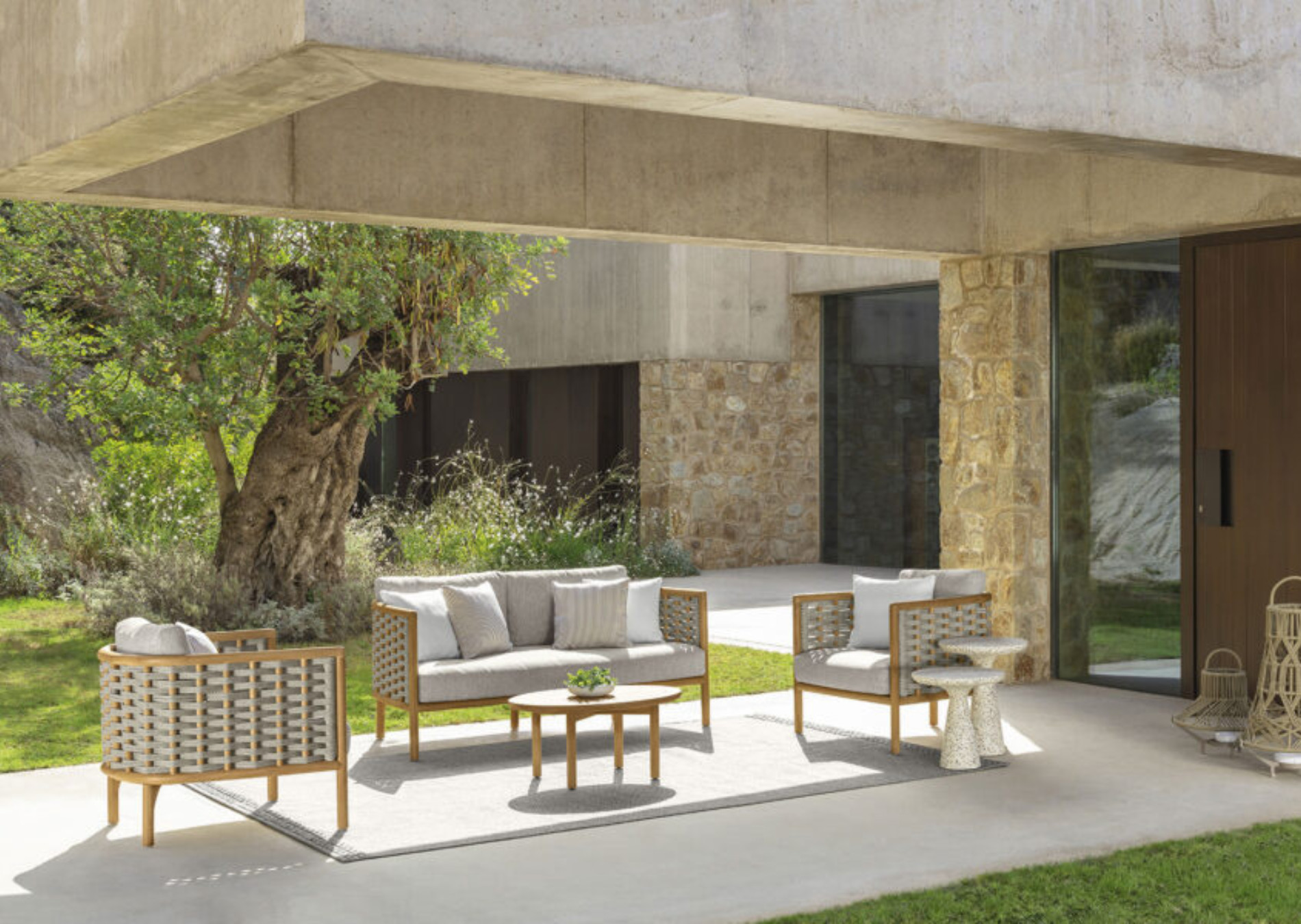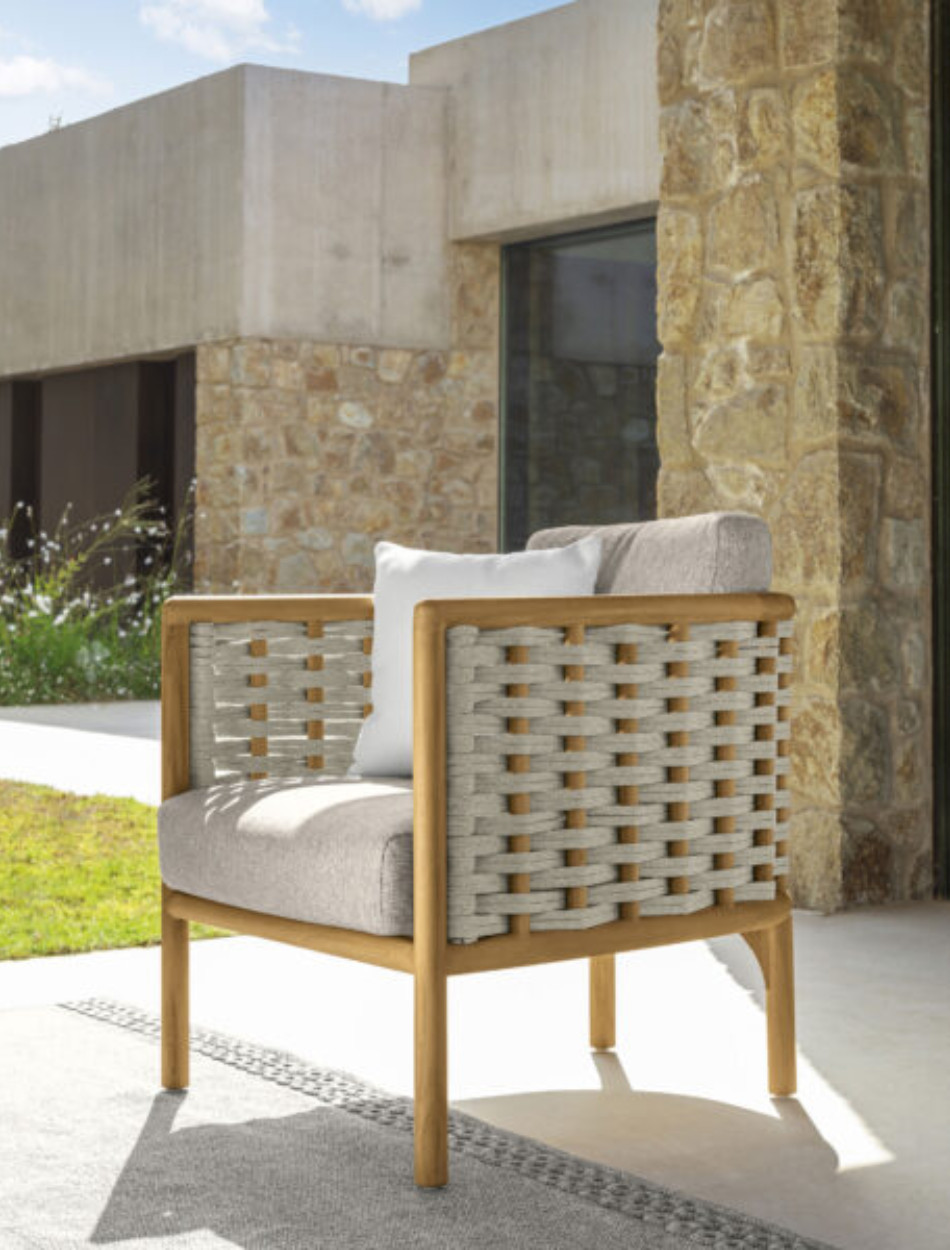 The Prichi 2 seater sofa is a sophisticated combination of the natural world and the English elegance of the indoor furniture. The design of this piece of furniture is characterized by the wall bar in continuity with the armrests, which develops around the seat with a sophisticated weave of ropes, intertwined with the teak wood planks of the structure. This intricate grid produces a cozy chic effect that radiates the outdoor living and gives the garden the comfort and composure of an indoor environment.