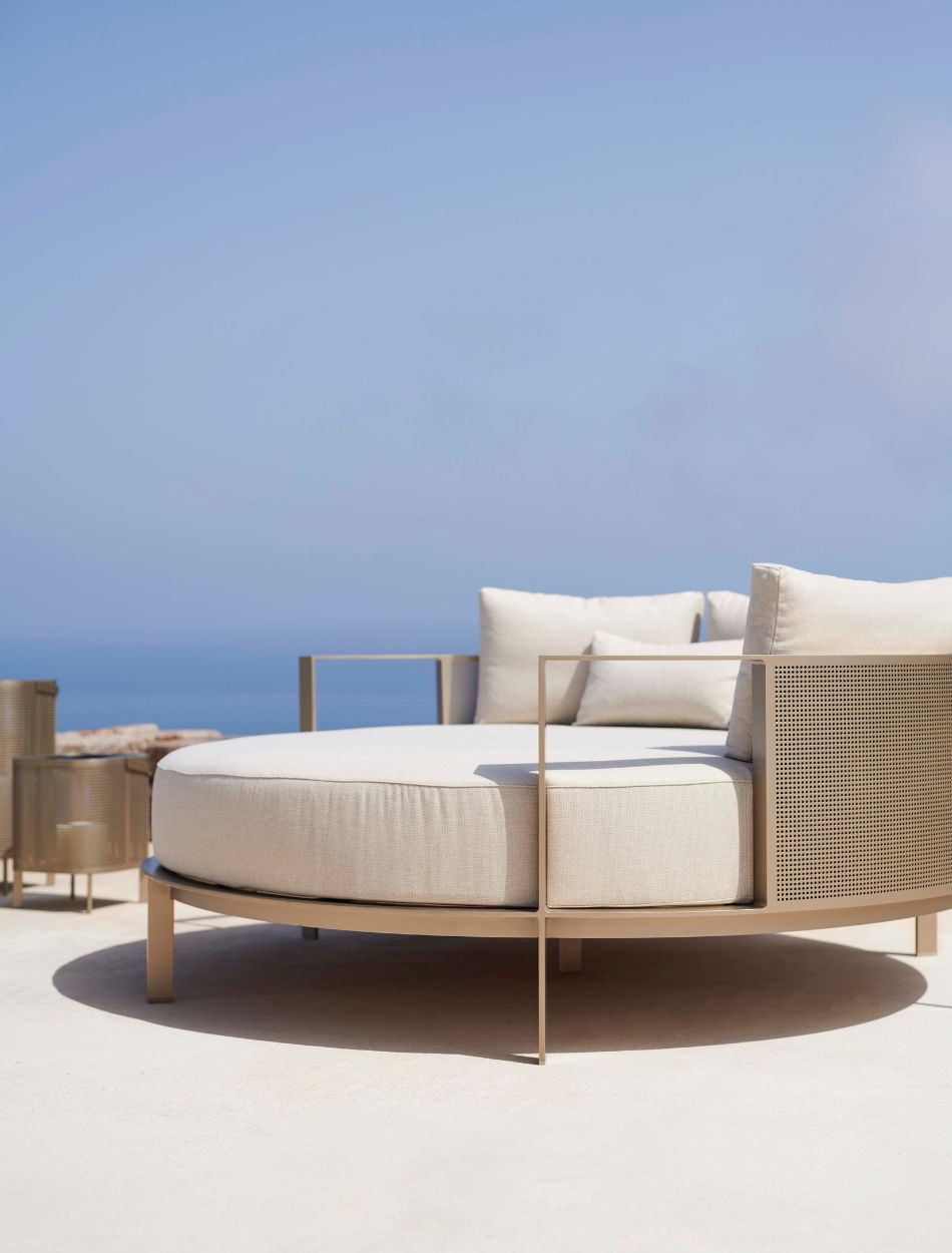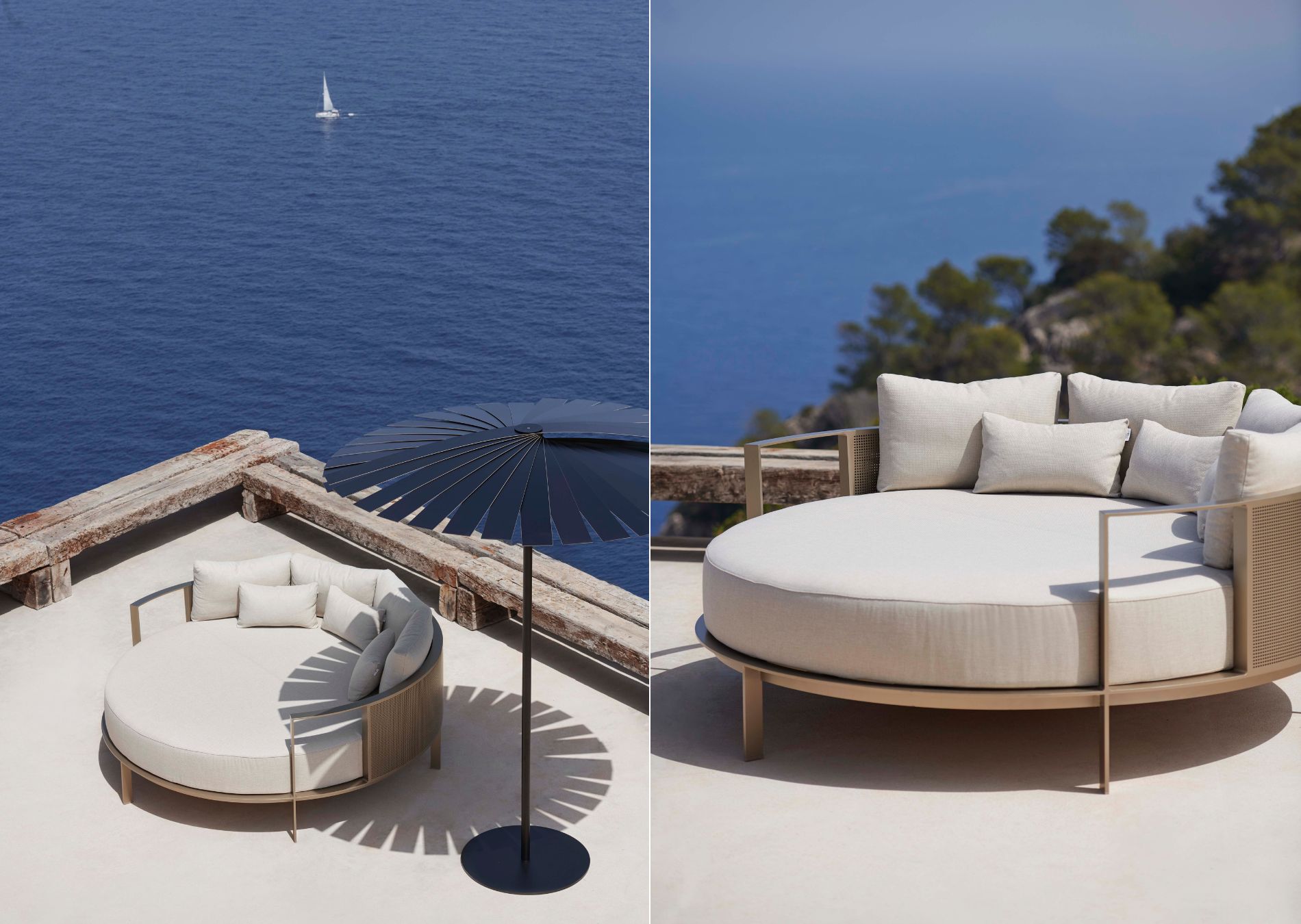 The SOLANAS round chill bed is an original design by Daniel Germani for GANDIABLASCO.