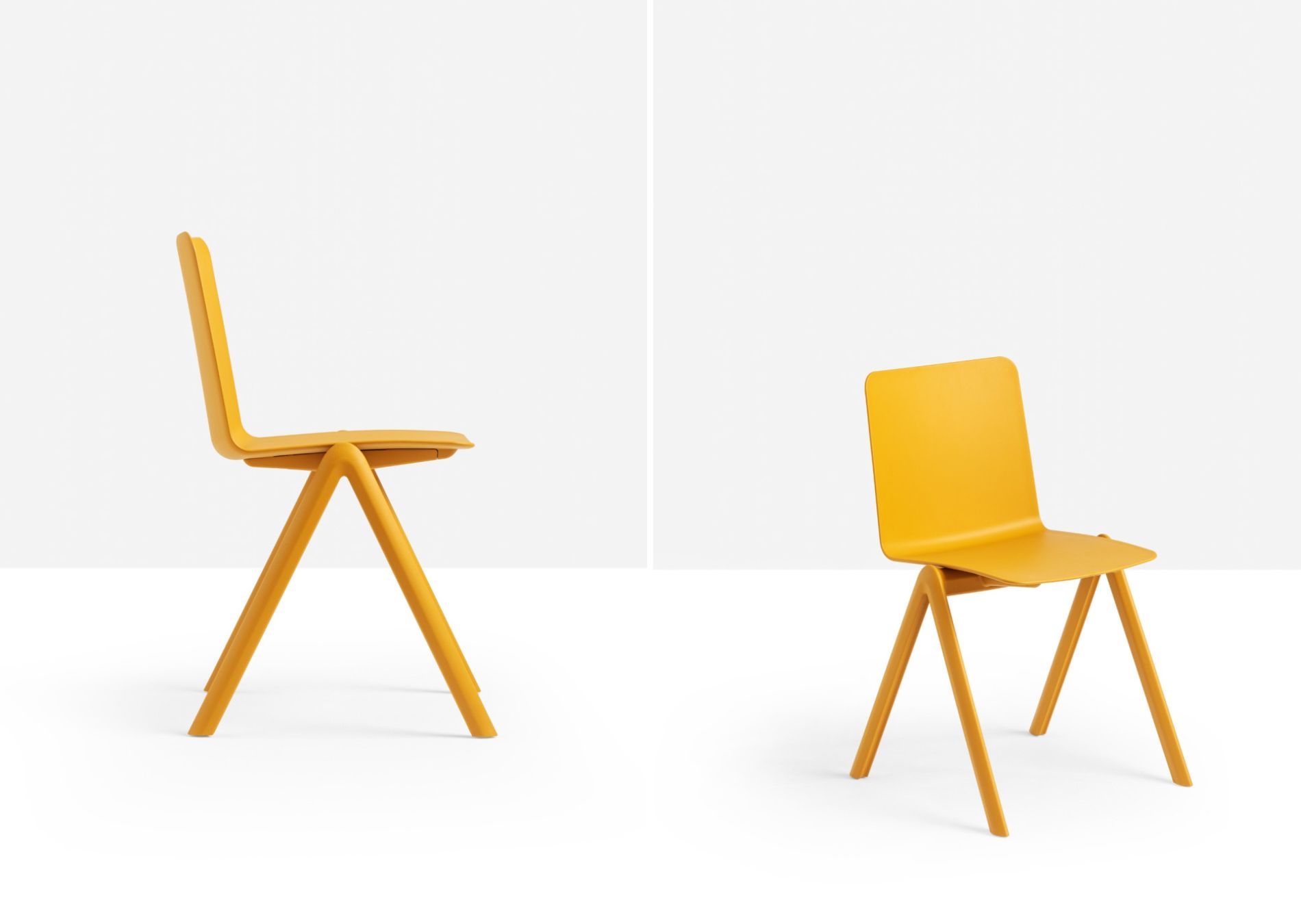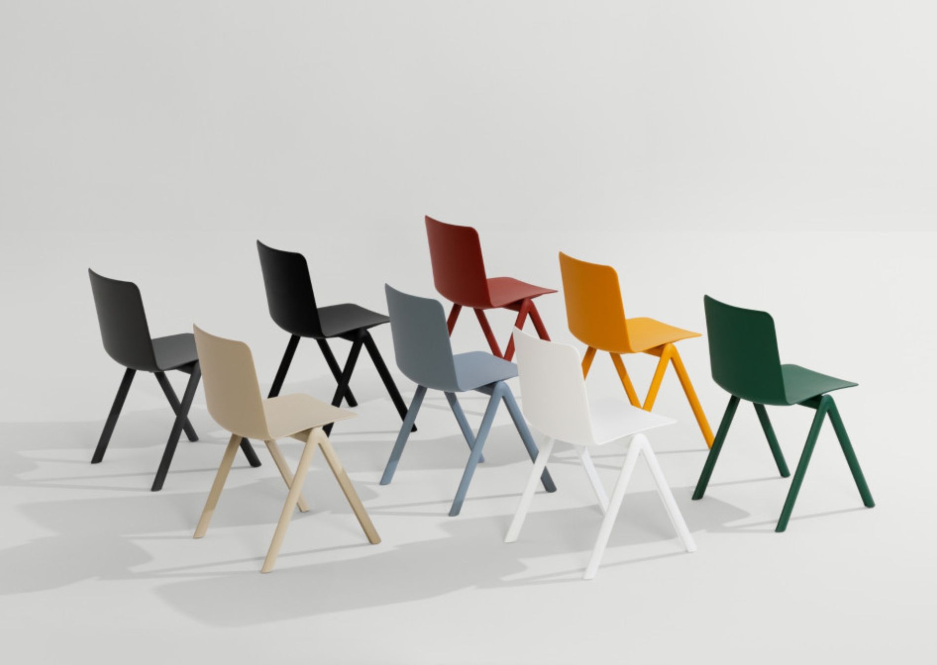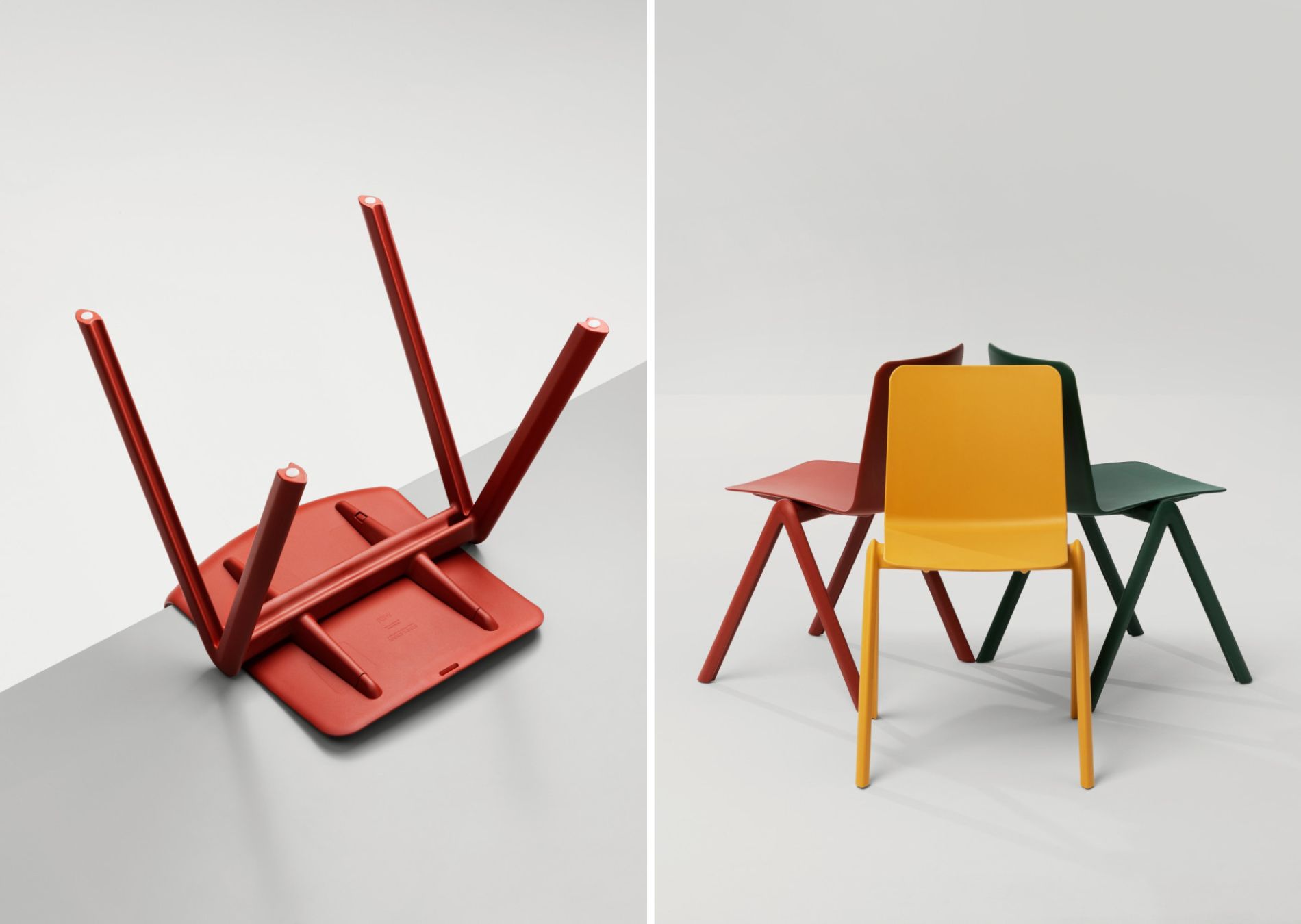 Stack chair is made up of two elements: base and shell that join without screws, easy to ship and easy to assemble, compact and stackable hypothetically to infinity.