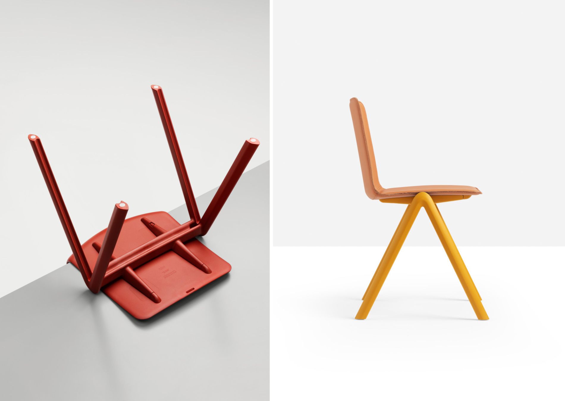 Stack chair is made up of two elements: base and shell that join without screws, easy to ship and easy to assemble, compact and stackable hypothetically to infinity.