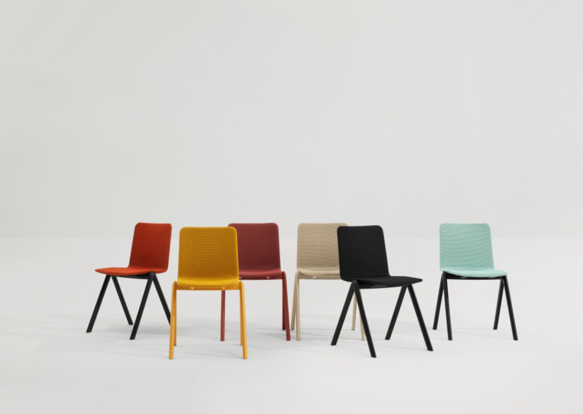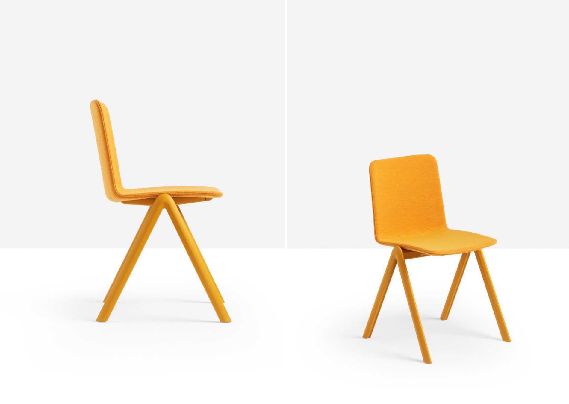 The shell, in addition to the polypropylene version, is available in wood, upholstered in fabric, leather, faux leather or hide. Also available only with the upholstered seating version.