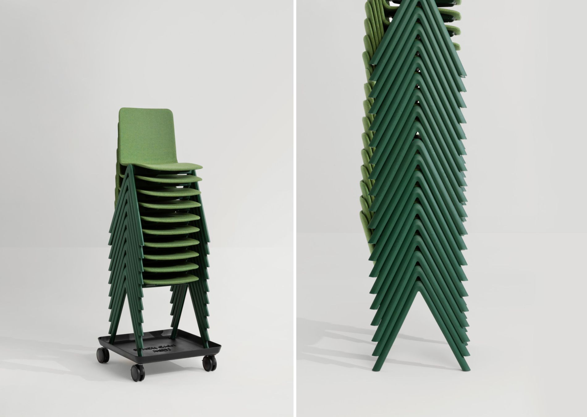 Stack chair is made up of two elements: base and shell that join without screws, easy to ship and easy to assemble, compact and stackable hypothetically to infinity.